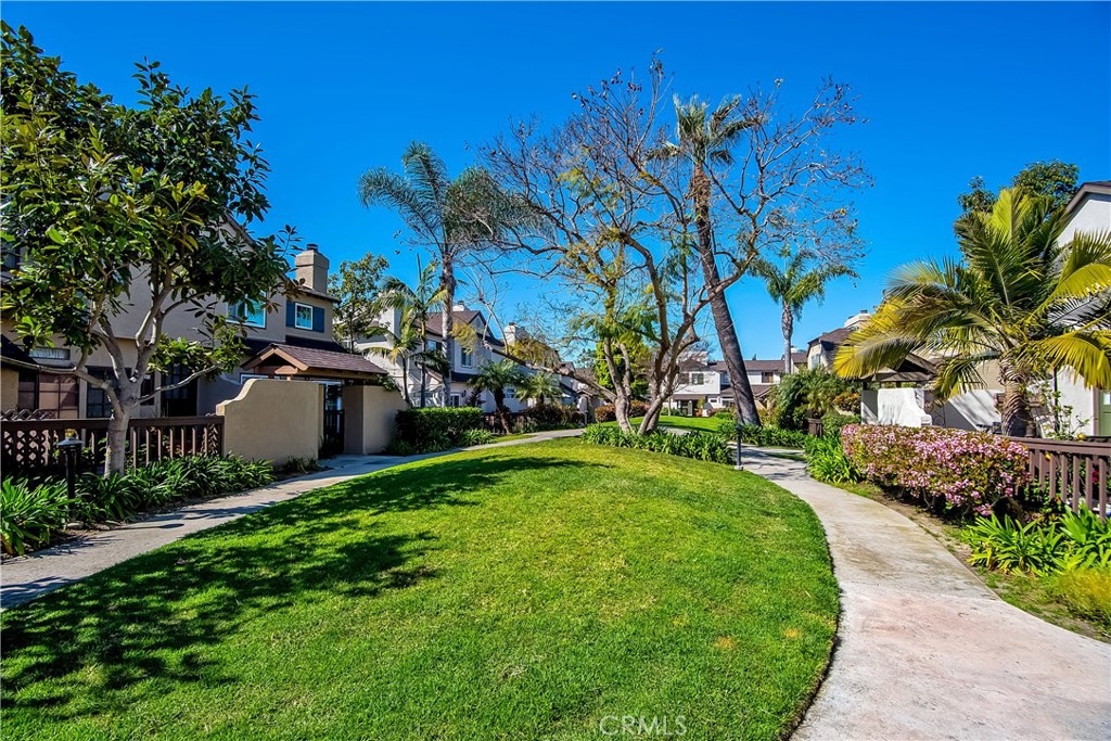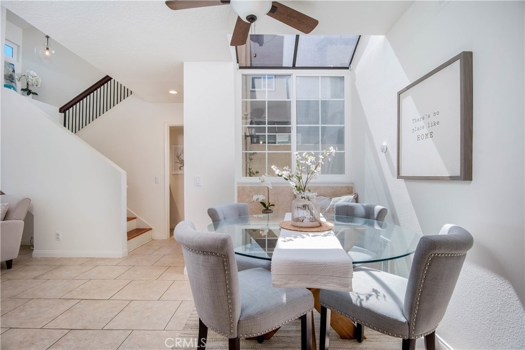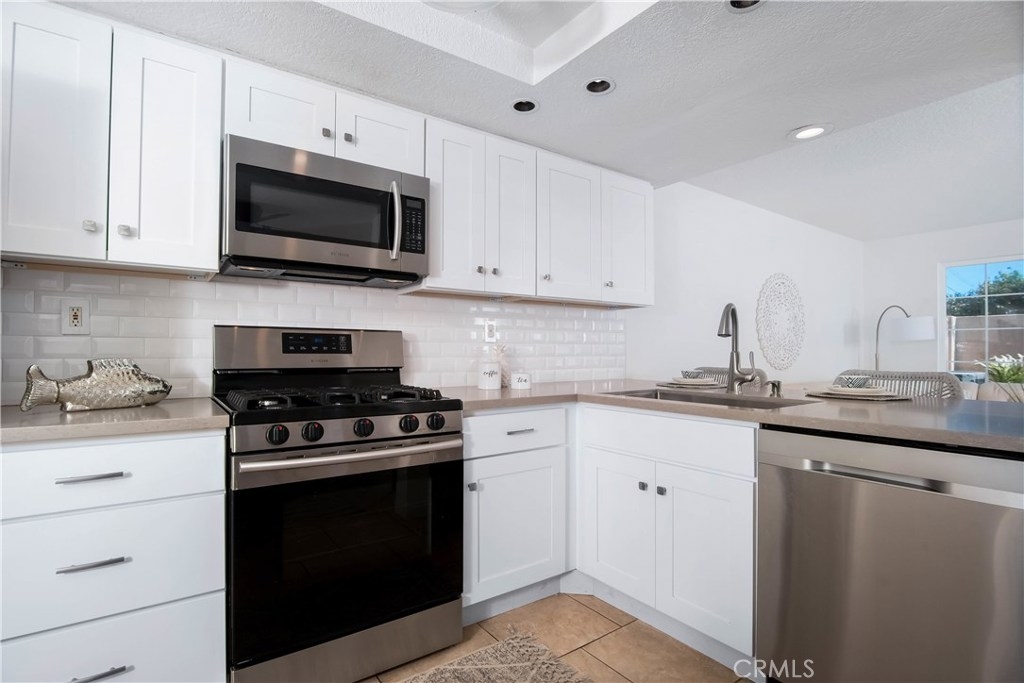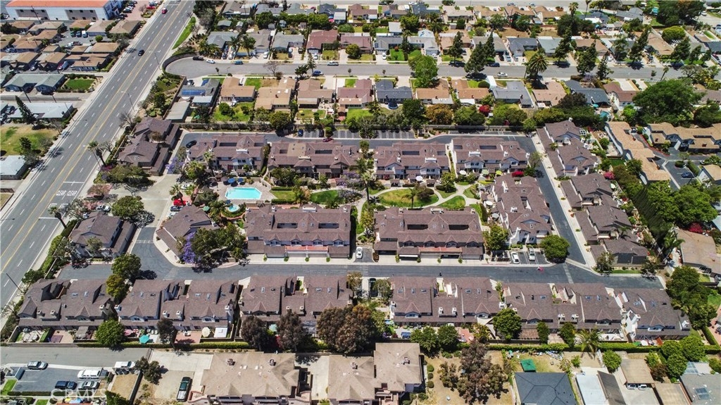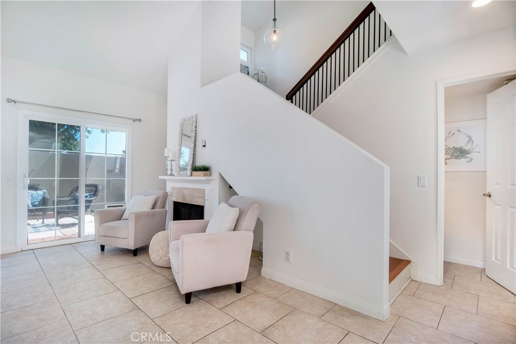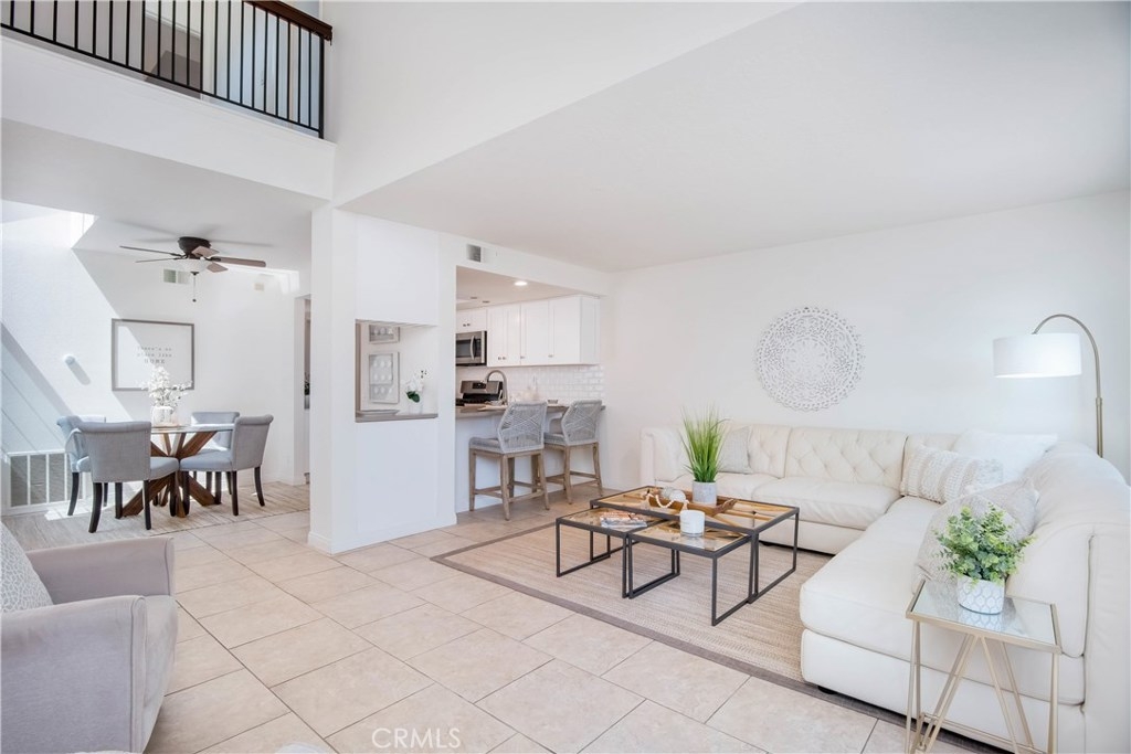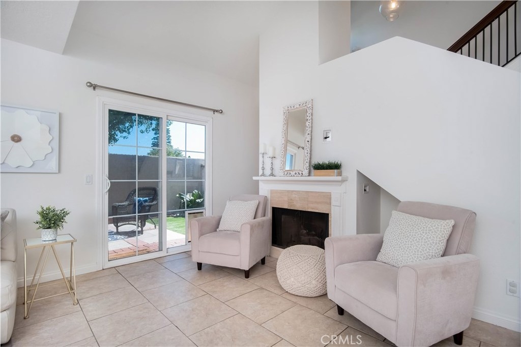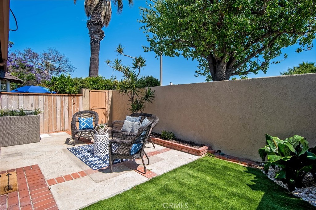 Located in a gated community just under three miles to the beach, this remodeled townhome boasts smart design, a clean color palette, and a spacious floor plan with vaulted ceilings. The downstairs statement window welcomes heaps of natural light creating an airy open space. The remodeled kitchen features white shaker style cabinets, quartz countertops, single bowl sink, full tile backsplash, and stainless steel appliances. Beautiful tile floors stretch throughout the first floor and wood laminate through the second floor. There is a gas fireplace in the living room and peek around the fireplace to find a large storage area. Walking through the sliding glass doors, you will find a large patio and yard with artificial grass. Upstairs you will find two spacious master bedrooms with vaulted ceilings, and each with their own full bathrooms. The home also has an oversized two car garage with direct access to the kitchen, dual pane windows throughout, recently painted interior, newer furnace, and Central A/C. The roof is approximately two years old. San Michel is a quiet gated community offering a pool, spa, and BBQ area with a low $239/month HOA. This is a must see.