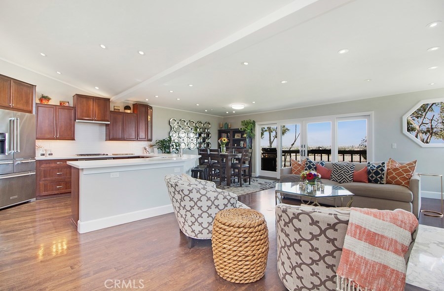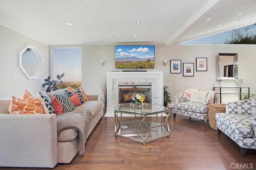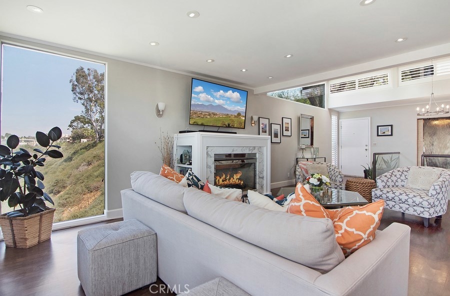 Views! Views! Views! Step inside this highly upgraded and renovated 2 bedroom/2.5 bath home. Perched along the bluffs overlooking the Talbert Nature Preserve and Santa Ana River with stunning panoramic and sunset views. The entry level open floor plan is an entertainer's dream featuring a cozy gas fireplace and tranquil water feature. Kitchen appointments include Quartz countertops, pull out cabinets, dual drawer Fisher & Paykel dishwashers, Thermador oven, 4 burner gas stove and water filtration system. Downstairs offers 2 private en-suite bedrooms each with outdoor balcony access. Master bath features include heated flooring, towel warmer, spa tub and custom built in cabinets. Interior laundry and direct access 2 car garage with ample storage & recessed lighting. Private end unit with a spacious Teak front patio and 2 rear decks that lend well to indoor/outdoor living. Enjoy the ocean breezes year round. Conveniently located to beaches, major freeways, shopping centers and the OC Airport. BUYER to verify and satisfy self to all information prior to COE.
