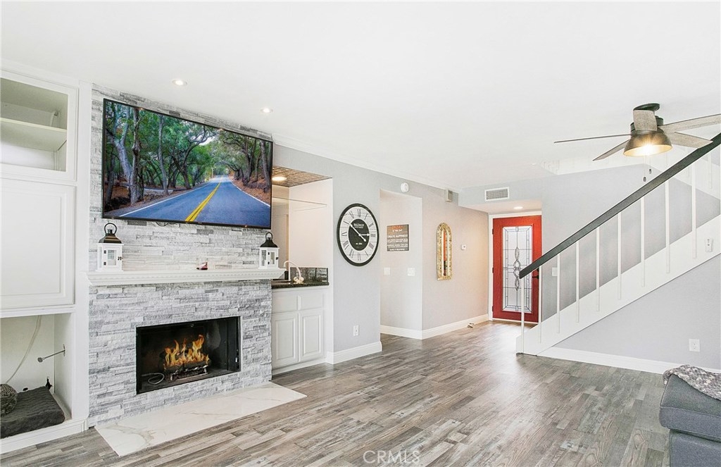 This large 3 bedroom, 2.5 bath condo is what you have been looking for. Highly upgraded with new floors and baseboards throughout as well as newly painted. The upstairs master bedroom boasts ample closet space and a massive master bathroom. Two other large sized bedrooms on the second floor. Downstairs is showcased by a brand-new stacked stone fireplace to keep you warm and cozy on the cool evenings. The kitchen boasts stainless steel appliances and granite counter tops.The spacious patio is located just outside of the dining area. This property is located within walking distance to The Camp, The Lab, and South Coast Plaza you will never find yourself without a place to go.