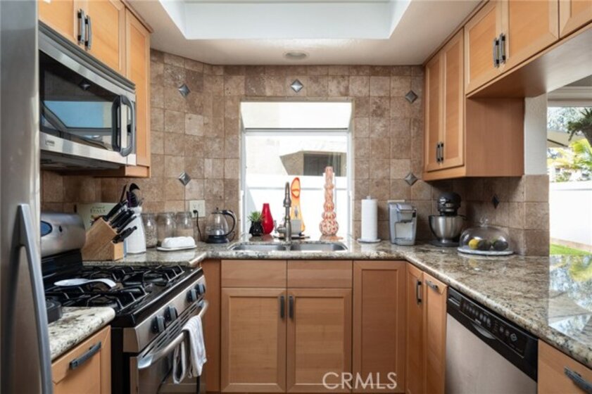 Centrally located near freeways, South Coast plaza shopping and dining, and a short distance to the beach, is this meticulously maintained 2 bedroom, 2.5-bathroom home within the highly desirable community of Sommerset Citihomes. Measuring more than 1,200 square feet, the home lives like a detached single-family residence featuring two-story vaulted ceilings, an attached two-car garage, private paver patio and turf lawn enclosed by high-quality fencing. A skylight and oversized windows with plantation shutters allow natural light to flood the main level of the residence, comprised of a powder bath, living room and kitchen with stainless steel appliances, granite countertops and tiled backsplash. On the upper level awaits built-in storage and two en suites bedrooms including the master suite fit with private balcony, voluminous ceilings, stylish contemporary bathroom and dual closets. A Nest thermostat, new (2018) A/C unit, built-in audio in the living room, and a park-like setting with winding sidewalks to the community pool and spa make this the ideal place to call home or an incredible investment opportunity.