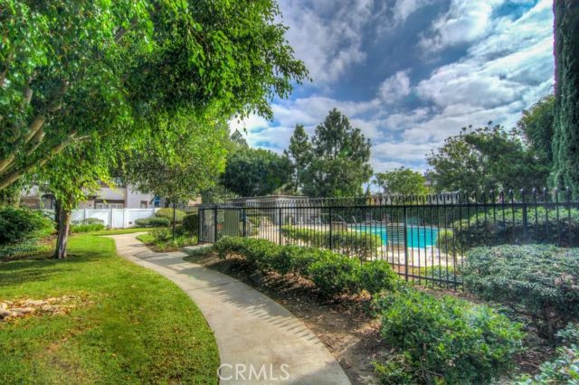 Dual master suite townhouse in the community of Somerset Citi homes. Tiled entryway opens to spacious living area with dramatic vaulted ceilings, wood burning fireplace and sliding door opening to a nice private back yard with patio and automatic irrigation system for the lawn and planters. Spotless kitchen with newer appliances, garden window, tiled floor and counters has a large breakfast bar. Large shuttered windows, newer slider and skylight spread an abundance of natural light throughout lining area, wrap around staircase and open landing. Plenty of linen storage upstairs. Front bedroom has vaulted ceilings, with slider to a private balcony, large walk-in closet and mirrored closets with dressing area. Open bathroom has dual vanities and a large soaker tub. Rear bedroom has a mirrored closet and a full bathroom with a tub and glass door. Attached, direct access two car garage with w/d hookups, extra storage space and a nice downstairs powder room complete this beautiful home. Many tree lined green belts. Two pools/spas. Walking distance to South Coast Plaza, Metro Point, the OC Performing Arts Center. Easy access to 405, 55 and 73 freeways.