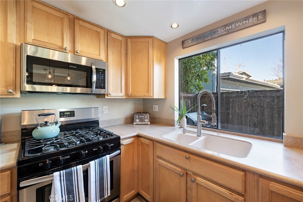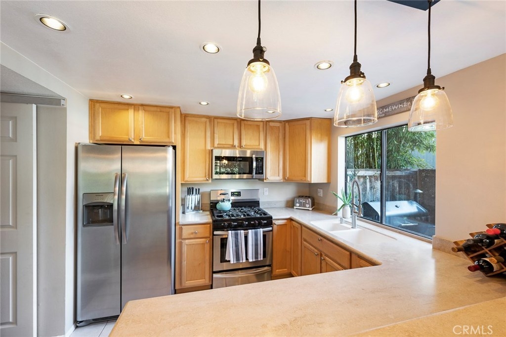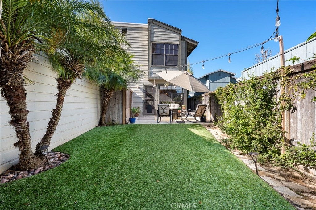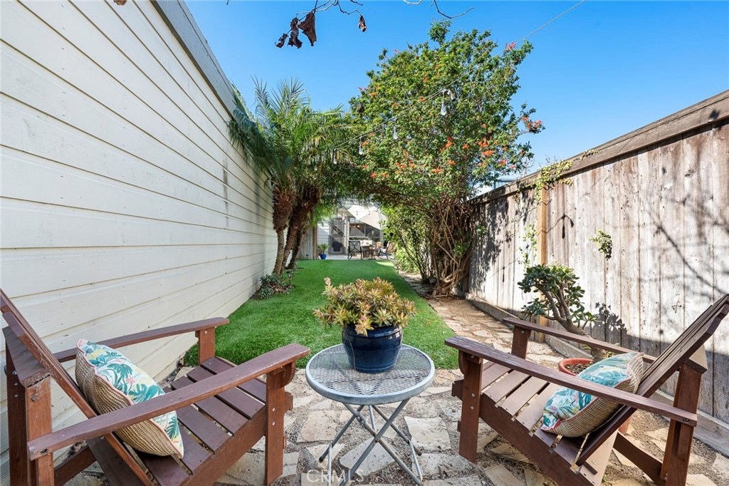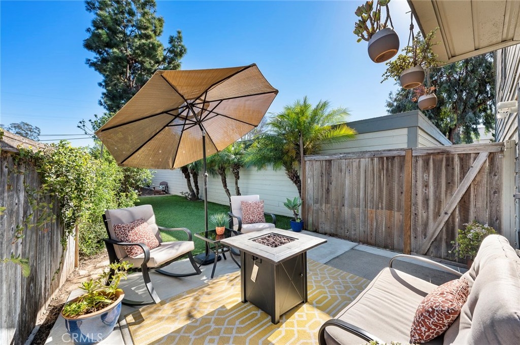 Ocean close gorgeous condo awaits you! End unit townhouse located in the exclusive Sunset Bluffs Gated Community. Property features 2 bedrooms, 2.5 baths, 1470 square feet, two story, 1 car detached garage with assigned carport just outside front door. Upon entry you are invited to a spacious step down living/family room with fireplace that is gas operated or could be converted back to wood burning, wood flooring throughout downstairs, tile at kitchen and bathrooms, remodeled kitchen w/limestone countertops, custom maple cabinetry, large breakfast bar, stainless steel appliances, separate kitchen eating area, indoor side by side laundry w/shelving units, large backyard patio which has concrete pad entertaining space, green grassy area which is cozy and quaint surrounded by trees & lights making this a tranquil sitting area. New roof just installed, water heater, W&D, dishwasher & garbage disposal all were newly installed in the past year. Master bedroom offers a patio deck for quiet relaxing & a walk in closet. Within walking distance to Vista Park which is the neighborhood park offering scenic views, tot lot & barbecue areas. Talbot Nature Preserve Park & Fairview Parks are also nearby. Hiking and biking trails that lead to the ocean which is just 2 miles away. Close to many restaurants, Airport, Hoag Hospital, Fashion Island, Pacific City and much more!