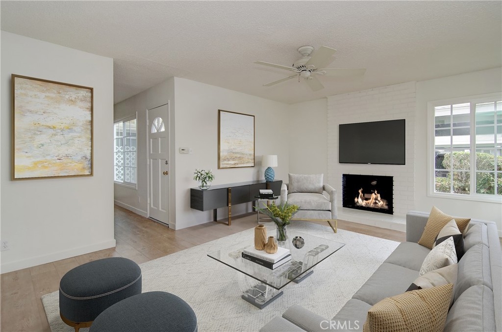 Fantastic purchase opportunity on this beautiful end unit 3 br 2 ba condo with enclosed garage and driveway located in the heart of Costa Mesa.  Convenient location across from Lions Park (ample public parking spaces directly across from the unit), Downtown Community and Aquatics Center, Donald Dungan Library and walking distance to Triangle Square and great local restaurants.  Fresh interior paint, new laminate flooring throughout the unit, waterproof laminate flooring in bathrooms, new carpet on stairs, new dishwasher, venthood and faucet in kitchen, forced air heating and new AC condenser,  and new miniblinds throughout.  Bright living room with fireplace, kitchen with ample cabinets and large pantry, dining area with window overlooking the private patio, extra storage space under the stairs, one bedroom (master bedroom) downstairs, mirrored wardrobe doors, master bath with re-glazed shower, 2 spacious bedrooms upstairs, walk in closet, hallway bath with re-glazed tub and new shower doors,  ceiling fans throughout, private patio for entertaining, laundry area in garage, automatic overhead garage door opener and designated driveway in front of the garage.  Popular "Vendome" community with pool and spa as well as community area.  Association dues include water and trash.  Fabulous coastal location close to all amenities, schools, shopping, freeways, Newport Beach, Back Bay, Fairview and Talbert Regional Park and Nature Preserve. Don't miss out!