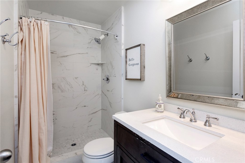 Welcome home! Completely turn-key, tastefully upgraded home at an incredible value. The gorgeous kitchen features marbled counter tops, deep single sink, pantry cabinet, stainless appliances, and beautiful matte finished flooring. The main floor master ensuite offers space and privacy with an elegant private bathroom. Upstairs you'll find both remaining spacious bedrooms and an additional bathroom with sleek tile and refined look. Remodeled to a beautifully modern taste, all you'll need to do is unpack. Within walking distance to entertainment and shopping, just a few blocks to Triangle Square. Close shopping, schools, and close freeway access.