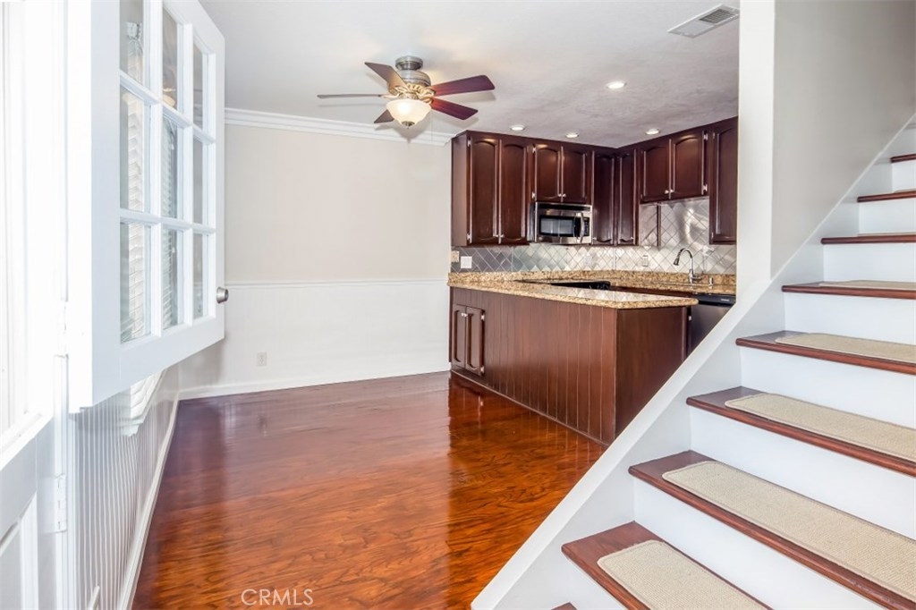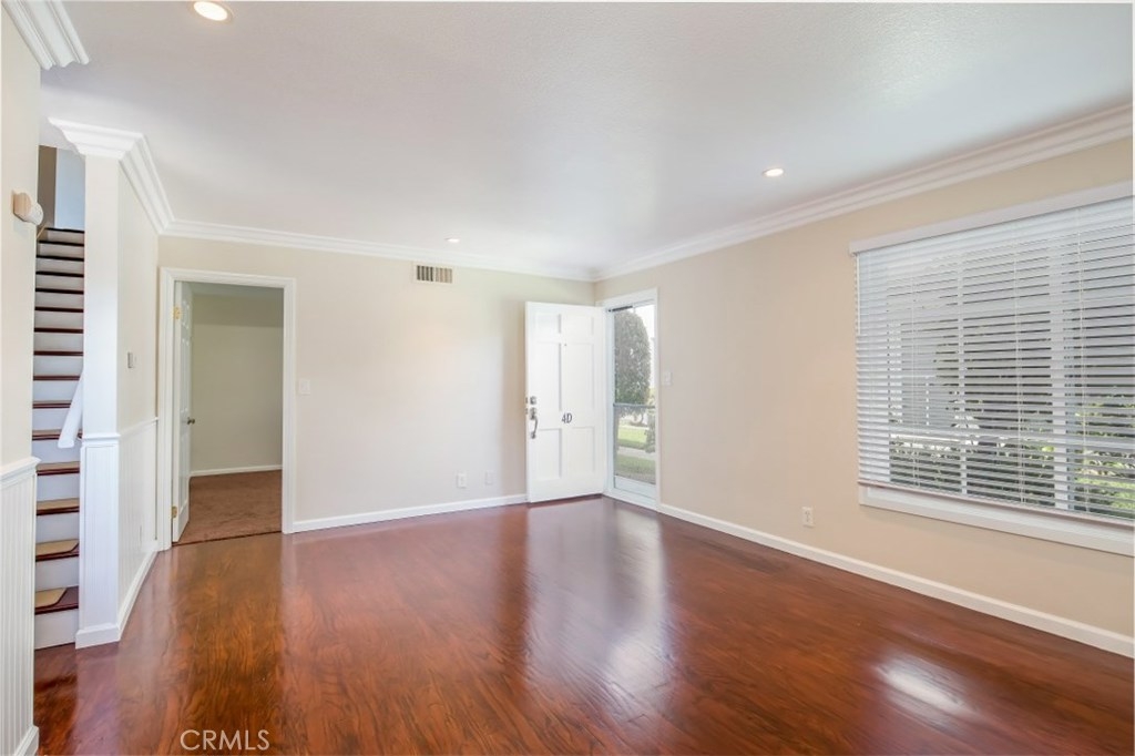 Feel the ocean breezes in this large, 3 bedroom town home. Rare end unit with direct garage access and laundry.  This home has been meticulously upgraded with dual-pane windows, hardwood floors, stainless appliances, granite counter tops, remolded bathrooms, all new blinds and carpet, crown molding, wainscoting, reconditioned fire place, wired for television and computer, including a lovely Dutch door out to the private and serene, tiled patio with extra drainage for easy cleaning.  This home is perfectly settled near endless, walk-able entertainment.  Brand new library across the street, Triangle Square, the shops and restaurants of Downtown 17th Street, and it is less than 2 miles to the sand of Newport Beach.  Property is located in an Opportunity Zone.  Enjoy the inviting pool and greenbelt - feels like a private park within your community. Sellers are motivated.