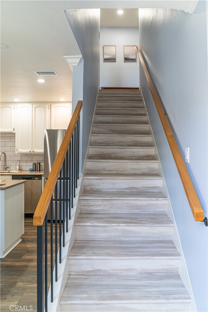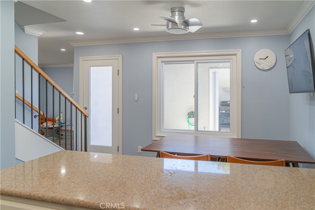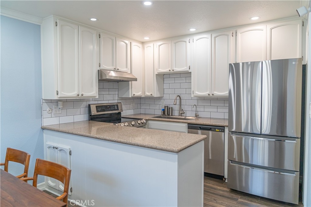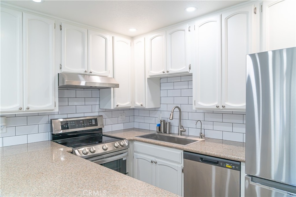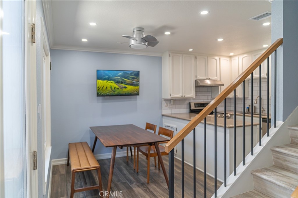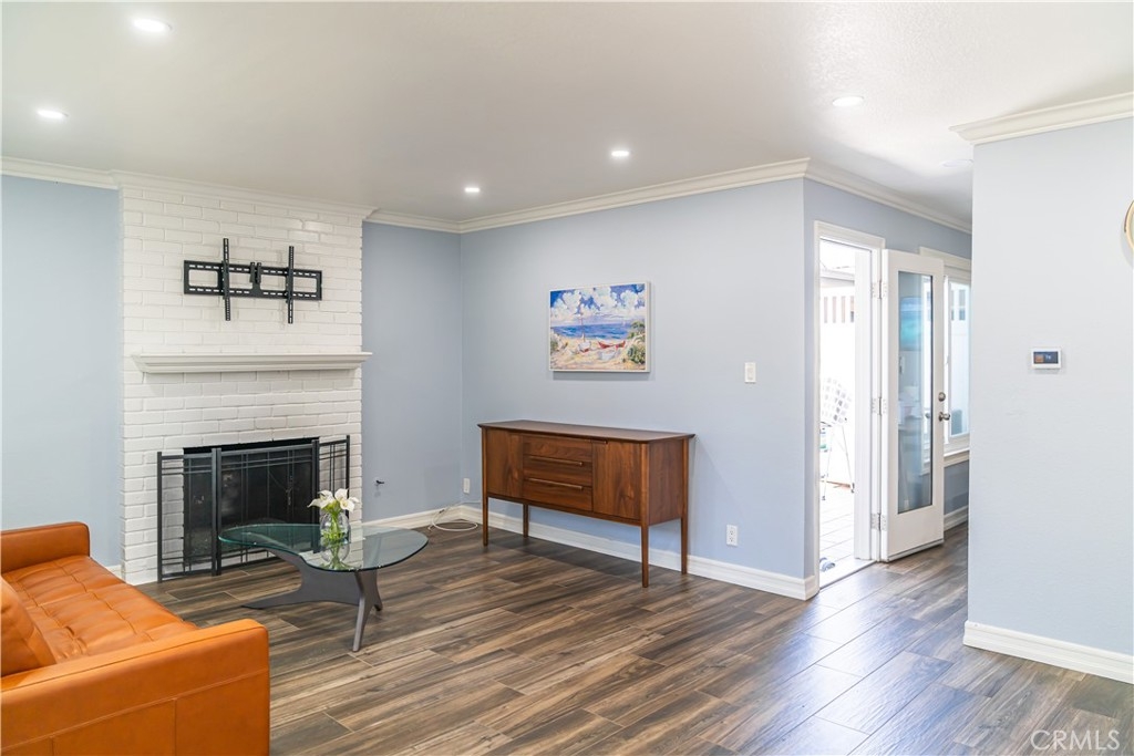 This beautifully updated two-story townhouse offers a highly desirable layout featuring 3 spacious bedrooms and 2 bathrooms, with the master bedroom conveniently located on the first floor. The home has been fully remodeled and includes new interior paint, tile flooring throughout the downstairs, recessed lighting, recently installed beautiful celling fans, dual pane windows, and vinyl shutters throughout the entire home. 1 car garage with additional 2 parking permits to park in the community. The kitchen stands out with elegant white cabinetry, a sleek white modern backsplash, a walk-in pantry, and newer stainless steel appliances—all complemented by a touchless modern sink. A beautiful French door leads from the main living area to a spacious private patio that also includes in-unit laundry with a washer and dryer setup. All bedrooms are generously sized, offering flexibility and comfort. Upstairs features newly installed vinyl flooring, brand new roller shades on the upstairs bedrooms, and a quartz vanity in the bathroom. Additional highlights include central A/C, a beautiful white brick elegant fireplace, and a 1-car garage attached to the property with the option to create direct interior access. The property was treated for termites recently, and the roof was replaced approximately 2 years ago. Both roof maintenance and termite control are handled by the HOA, providing long-term peace of mind and low-maintenance ownership. Located in a sought-after community known for its inviting atmosphere, residents enjoy well-maintained landscaping, a sparkling pool, and a great neighborhood vibe. Just steps from Lions Park, Mother's Market Trader Joe's and minutes from Newport Beach, this property blends quality living with coastal convenience. This is a rare opportunity to own a turnkey Home with premium upgrades, low-maintenance benefits, and a prime location.