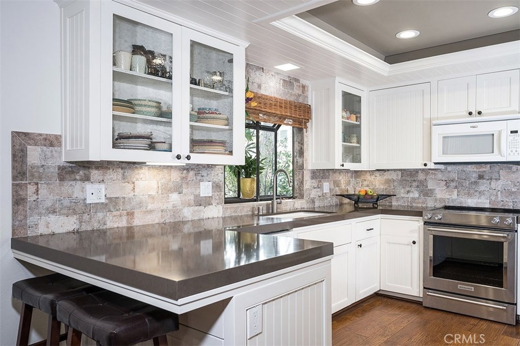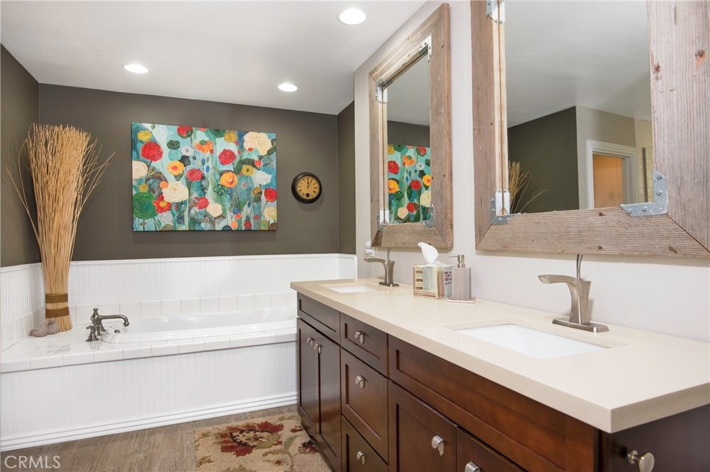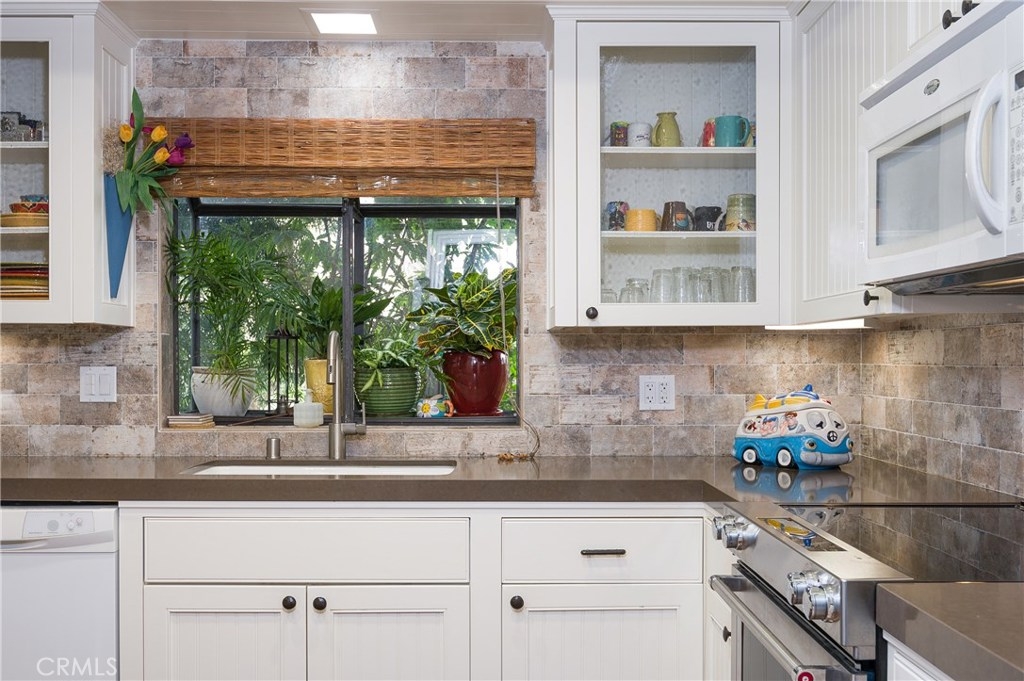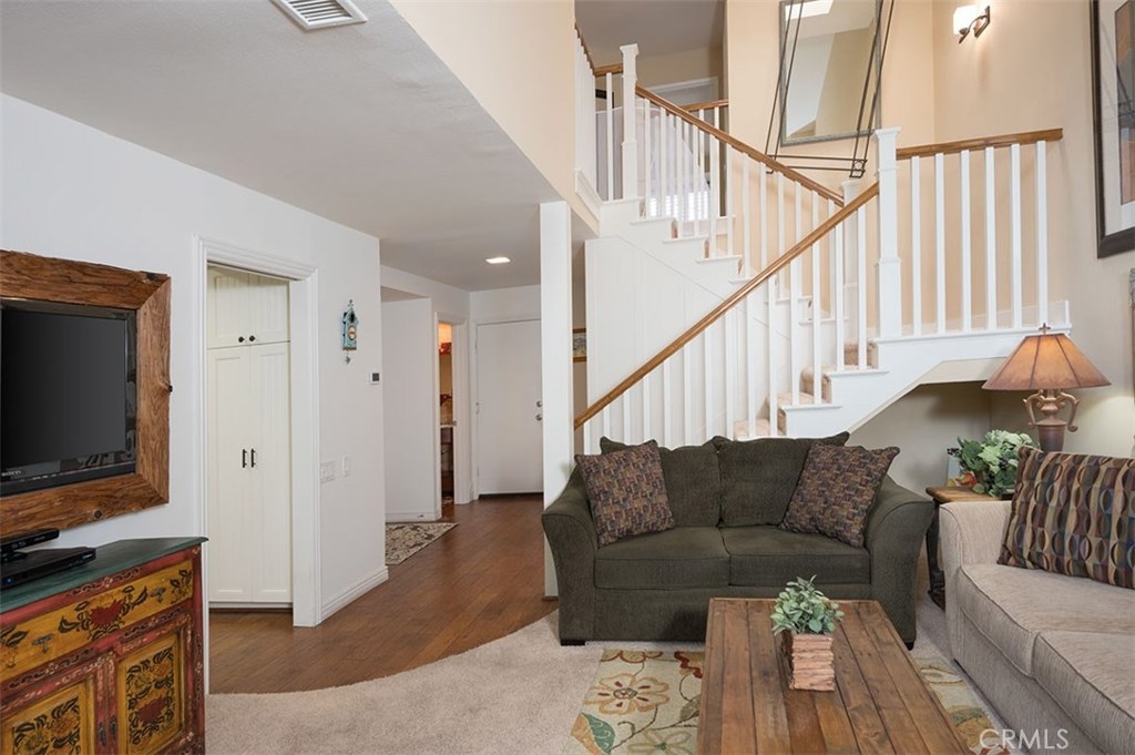 Tucked away in the idyllic gated enclave of The Village at Admiral Way, this beautiful 2 bedroom, 2.5 bath residence provides a private sanctuary among mature landscaping and updated interiors. Punctuated by 2-story ceilings, the airy family room with welcoming stone fireplace looks out to a lush private patio. This secluded al fresco area transitions seamlessly to the interiors inviting cool breezes and sunlight into the peaceful entertaining spaces. A modernized chef’s kitchen opens to the breakfast nook with plantation shutters, allowing plenty of natural light into the open concept room. On the second floor, the master suite and guest bedroom revel in views of the neighborhood’s scenic greenery. Located on a corner lot, the home takes advantage of only one shared wall and is surrounded by a picturesque green belt. Additionally, the residence features a full 2-car garage - one of only two in the entire complex - with new epoxy flooring. Located in sought-after Eastside Costa Mesa, the home is in close-proximity to excellent shopping and dining, renowned beaches, freeway access, and John Wayne Airport.