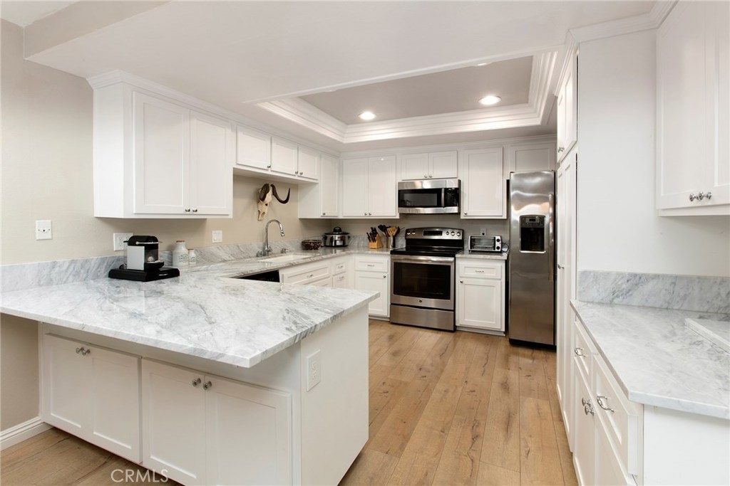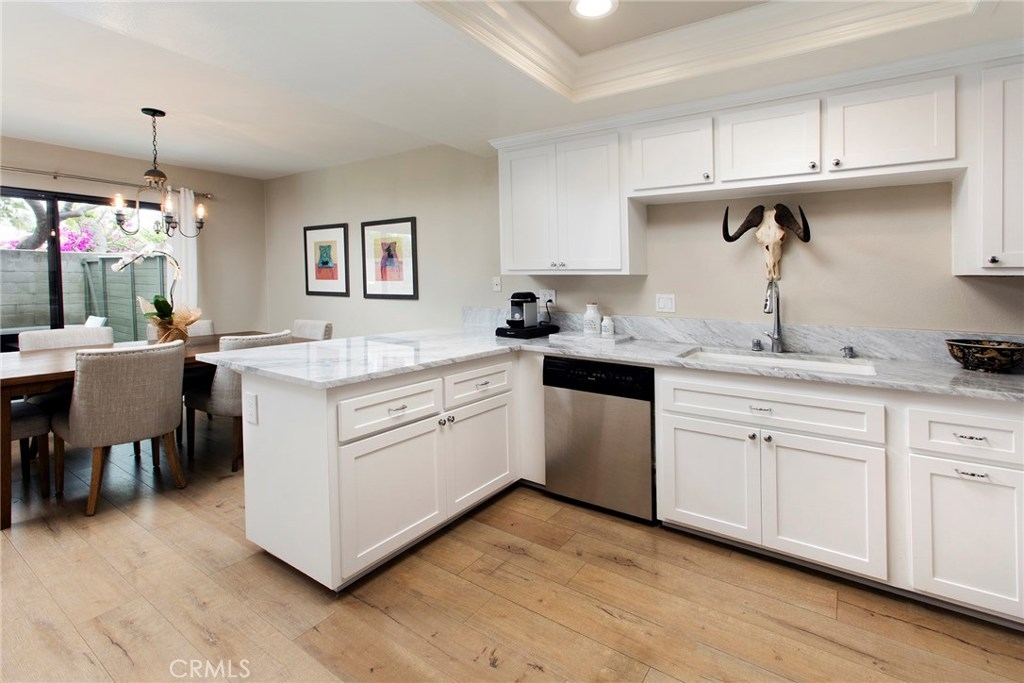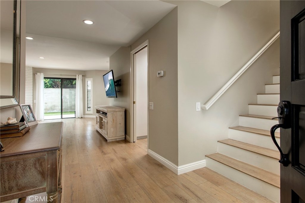 Nestled in the gated community of The Villages of Admiral Way lies this exceptional 3 bedroom, 2.5 bath end unit. Upon entry you’ll be greeted with spacious open floorplan that allows the perfect amount of natural light. White cabinetry, stone countertops and stainless steel appliances adorn the kitchen which opens up to the dining and living room areas. Breakfast can be served on-the-go from the breakfast bar, or you can share a meal in the dining area furbished with an elegant chandelier. In the living room you’ll enjoy a relaxing evening sitting by the roaring gas fireplace. Inside laundry completes the downstairs. Up the winding staircase are 3 bedrooms, 2 with vaulted ceilings creating a sizable living area. The luxurious master bathroom has the most to be boastful about with dual sinks, vanity area, a separate tub with hanging chandelier, and a huge walk-in shower. Outside is a large, private back patio complete with a well-manicured lawn and mature tree creating a peaceful place to take a break and feel at home. To top it off, this condo is in close proximity to the Orange County Fairgrounds and dining and entertainment options on Newport Blvd and Triangle Square, making this an incredible opportunity you won’t want to miss out on.