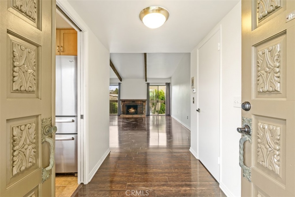 LOCATION!! Top floor Corner unit ,open concept and spacious floor plan with lots of light and a balcony! This property features an oversized master bedroom with a large barn door closet. Beautiful hardwood laminate throughout the home. Remodeled Designer kitchen, renovated bathroom and upgrades throughout the home. It also features a fireplace in the living room and a 2 car garage that has extra storage. Air Conditioning will be helpful on those hot summer nights. Indoor washer/dryer hookups. Come see to appreciate. Close to freeways and walking distance to South Coast Plaza, Crystal Court, Metro Point, and Theaters . Association is gate guarded and has a pool, spa and clubhouse. Enjoy the South Coast lifestyle.
