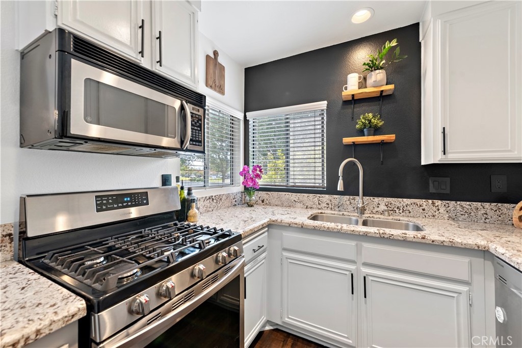 Welcome to the very best in Costa Mesa living in the highly sought after community of Victoria Gardens. This upgraded 2 bedroom, 3 bathroom home includes low maintenance flooring throughout the main living area. Step into the well-apportioned kitchen with with stainless steel appliances, granite counter tops, modern drawer pulls and accent wall. The property includes recessed lighting and the large windows let in warm ambient light light all year round. The residence is finished with a spacious patio to entertain and 2 parking spaces in secure garage with plenty of guest parking with 12 community first come parking spaces in garage and 4 more located out front. Main bedroom includes vaulted ceilings and walk-in closet. Association fee includes pool and landscape maintenance, water, sewer, and trash. Centrally located to local shopping, dining and entertainment. In essence, it's the perfect place to call home.