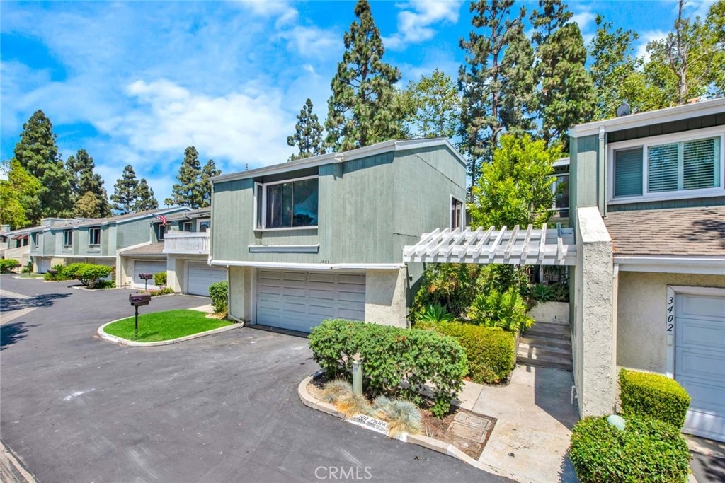 Welcome to this charming 3-bedroom, 2-bathroom condo in the Village Creek community of Costa Mesa. Spanning 1,324 square feet, this home greets you with fresh paint and laminate flooring as you enter. The first level features a main-level bedroom, ideal for guests or a home office. The kitchen, equipped with stainless steel appliances, flows seamlessly into the dining room, which opens to your private patio through sliding glass doors. The living room includes high ceilings and a cozy fireplace. Upstairs, you’ll find two additional bedrooms with newly laid lush carpeting. The two-car garage provides direct access to the home and includes washer and dryer hook-ups. Enjoy the community amenities, including a pool, clubhouse, picturesque pathways, a charming gazebo, and tranquil brooks. This prime location offers easy access to South Coast Plaza, Metro Pointe, South Coast Village and John Wayne Airport, providing endless entertainment and dining options. Don’t miss your chance to become the newest neighbor in this wonderful community!