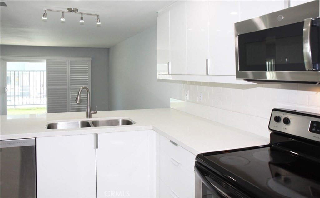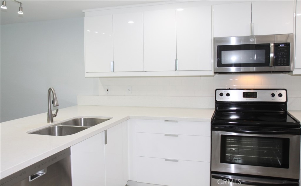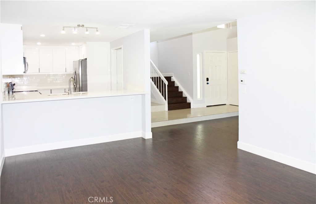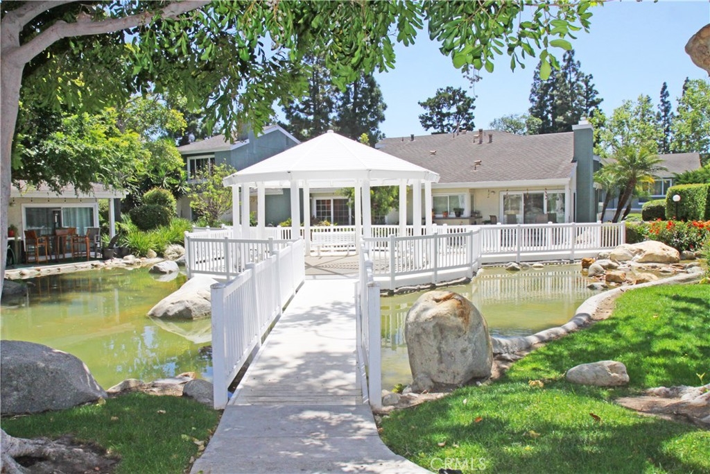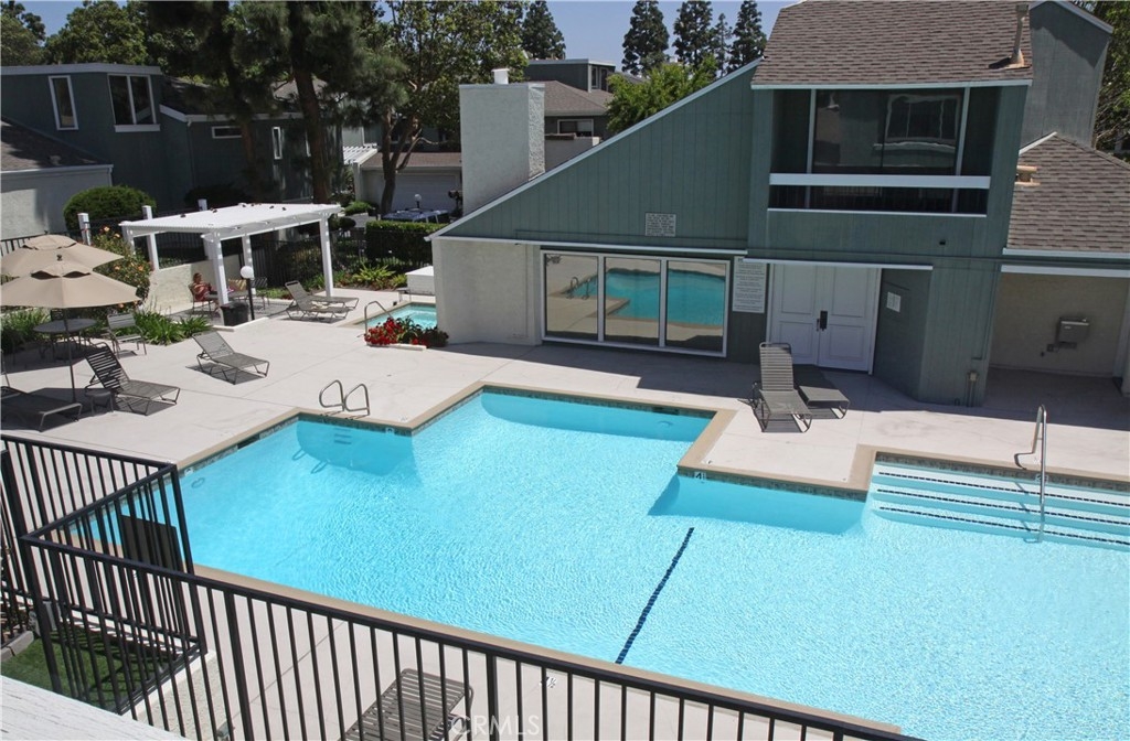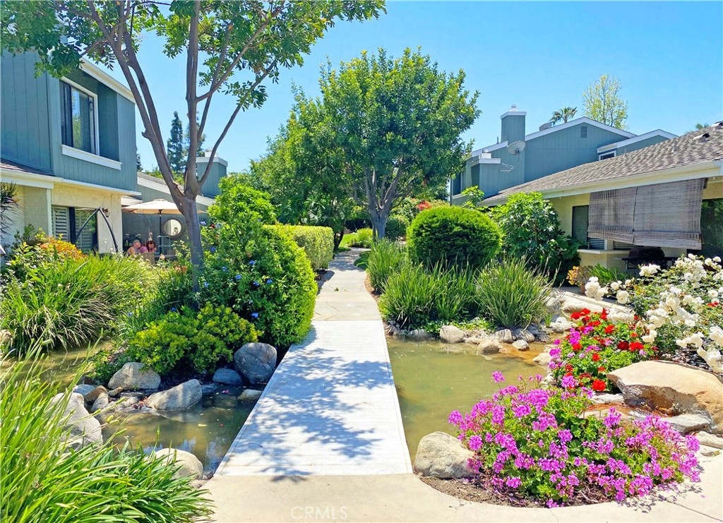Highly Upgraded and Premium "light filled" location with direct view of the pool from your living room (with fireplace!) and private patio. Kitchen and dining room also open out to this great large outdoor space. This floorplan offers vaulted ceilings, 2 secondary bedrooms (both also with vaulted ceilings and provided fans) and guest bath on their own level, and the HUGE master suite with expansive closets (TWO) and dressing area on the top level, again overlooking the pool and open space. Direct access private 2 car garage with full size laundry facilities (washer and dryer are included here). Newer sleek modern design euro white kitchen cabinetry that has soft close features and extra deep pots/pan drawers, with quartz look counters and stainless appliances (refrigerator stays too!). Brand new plush carpeting in the two secondary bedrooms and wood floors in other areas throughout main floor and polished stone floors in the master suite. Recent replumbing done including new water heater, and JUST completely repainted from ceilings down make this "like new". High end plantation shutters finish the living room and great room look. And if that's not enough, just two blocks to world class restaurants, entertainment, and shopping at South Coast Plaza! Public transit stop very near this home, which was a great feature for prior occupant who piloted out of OC airport - quick access.