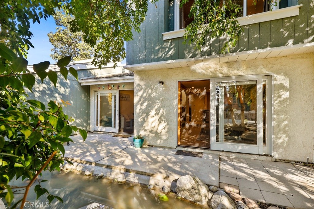HUGE PRICE REDUCTION!! Seller has identified new home and will entertain all offers. Don’t let this opportunity pass you by! Come live your best life in this gorgeous Village Creek condo. As you enter you will gaze upon a light and bright open floor plan with soaring, vaulted ceilings that create a high volume living environment. The living room and dining room enjoy direct access to the serene backyard where you can open the patio doors wide to create a relaxing indoor outdoor living atmosphere. The kitchen has been upgraded to feature cabinets accented with glass panels, stainless steel appliances, granite counters, tile backsplash and an eat-at counter. Two bedrooms and a full bathroom are on one level, while the primary bedroom and en suite enjoy the privacy of being on a separate level. The attached two car garage makes parking a breeze and adds extra storage space. Imagine sitting out back along the meandering stream with a quaint footbridge, sipping your favorite beverage, in the shade of the trees, listening to the sounds of nature all year long. Village Creek offers its residents resort quality amenities including a sparkling pool, clubhouse, tennis courts and basketball courts for endless hours of outdoor enjoyment. Leave your car at home, as you visit the abundance of shopping, dining and entertainment venues just down the street. Quick freeway access will make commuting a breeze and take you to world-class beaches and amusement parks in minutes.