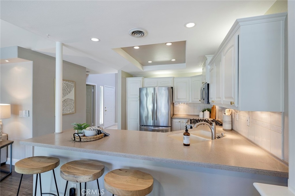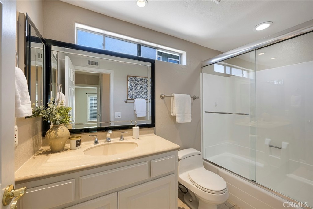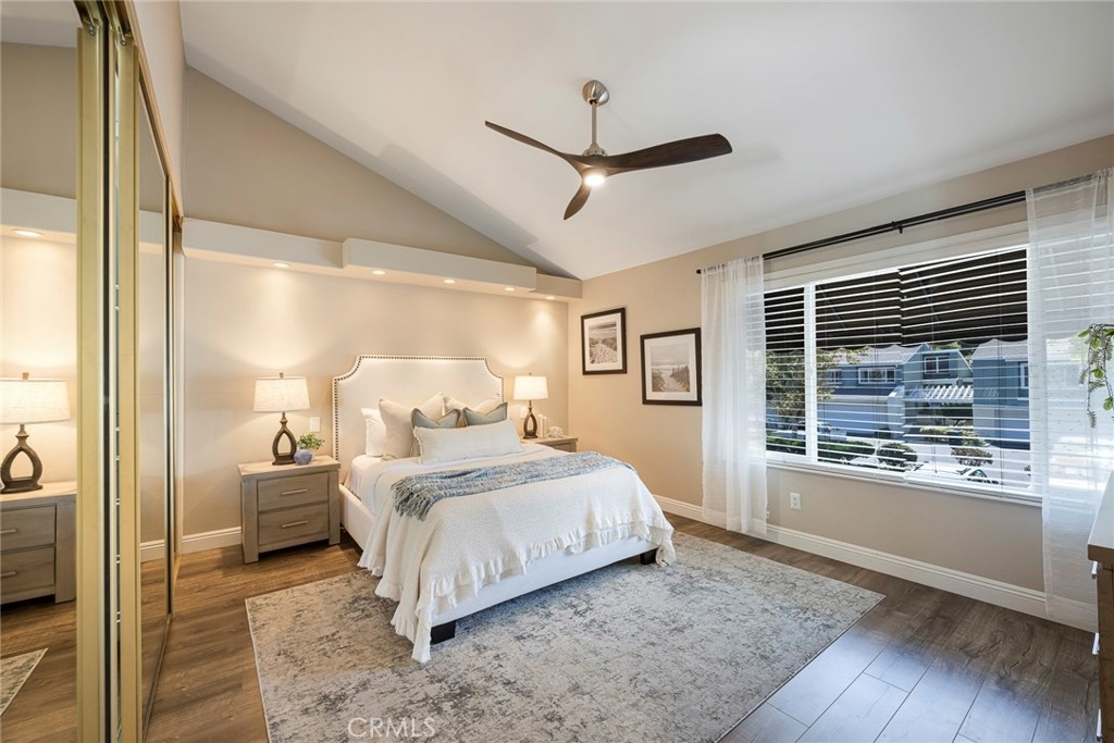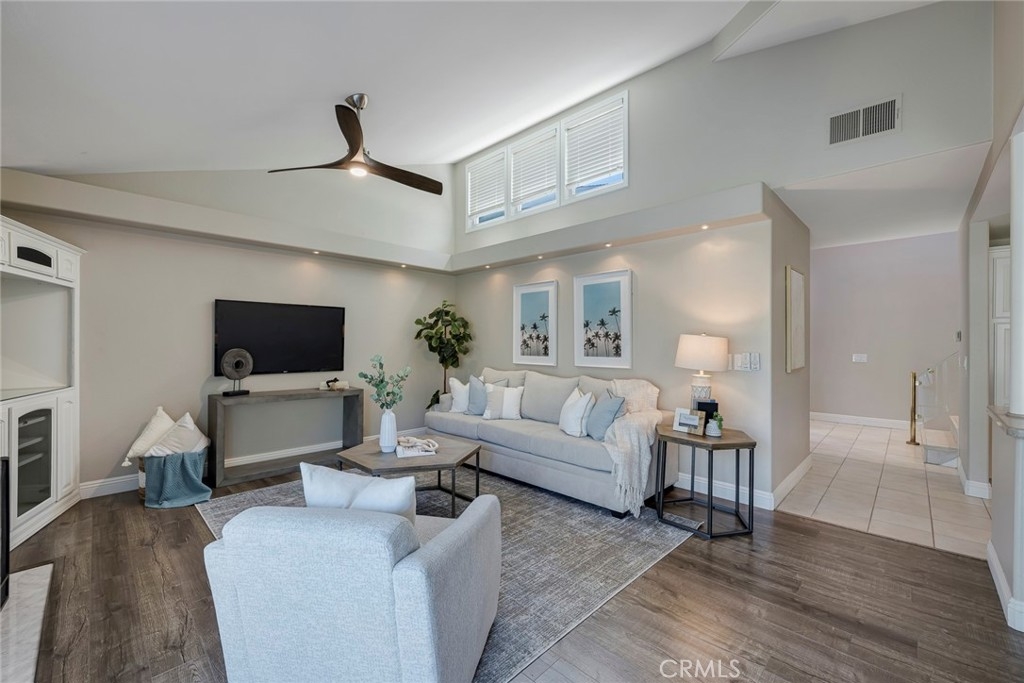 Be in the heart of Orange County without breaking the bank! This move-in ready Village Creek townhome is centrally located in Costa Mesa-the pulse of the South Coast Metro area. The moment you step in the doorway, you will be impressed with the soaring ceilings and light-filled spaces. The home includes three bedrooms— one on the first level, an open concept kitchen, fireplace, ceiling fans, dining room and living room, and two more bedrooms on the second level. The primary suite offers an en-suite bathroom and mirrored wardrobe with built-in cabinetry. You will find this home to be in one of the best neighborhood locations with parking and the pool just steps away. Some of the many upgrades include central heat and air conditioning, remodeled kitchen, recessed lighting, tile and wood laminate flooring, and dual pane windows. Village Creek features streams, waterfalls, pool and spa, clubhouse, sport courts, park areas, and ample parking. The surrounding area is full of activity, with ample shopping, dining and cultural opportunities. Enjoy the entertainment hub nearby, boasting Segerstrom Center for the Arts, Orange County Museum of Art, South Coast Plaza, Metro Pointe at South Coast, The SoBeCa District, Metro Town Square, and many community parks. Come home and hang your hat at Village Creek today.