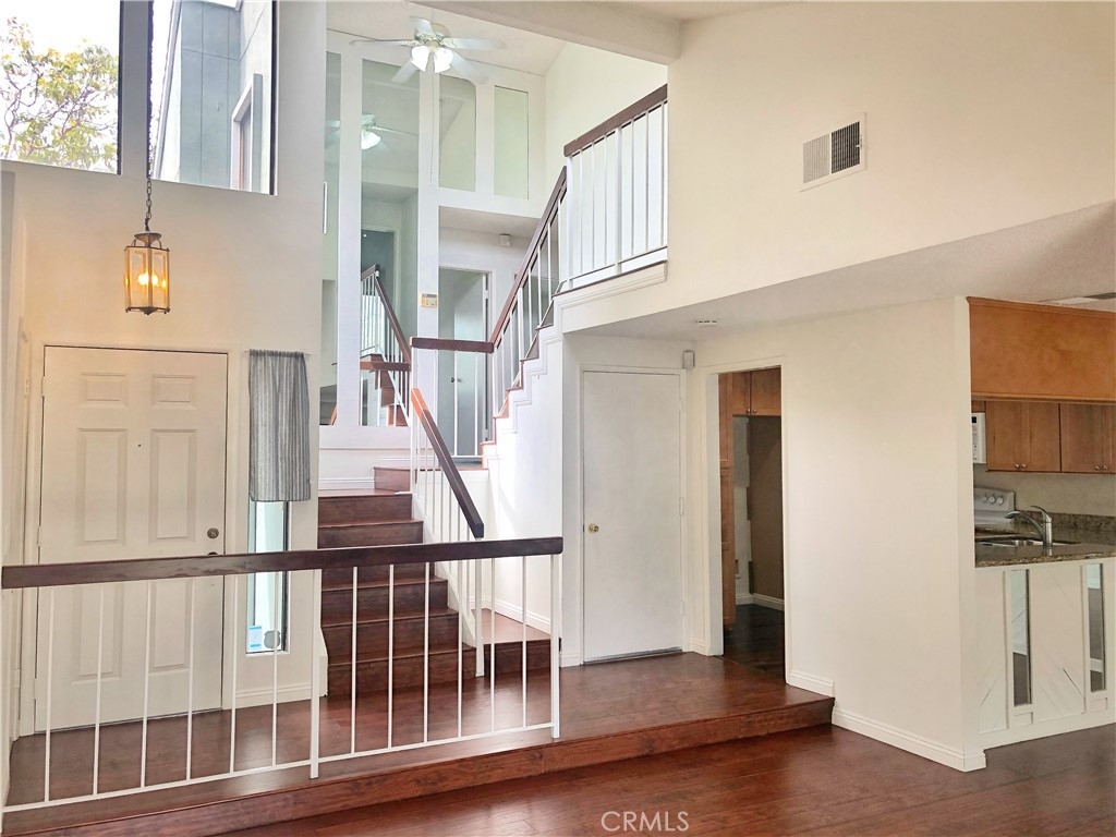 Located in a very well kept community of Village Creek within a short walking distance to South Coast Plaza, Metro Pointe, OC Performing Arts, Segerstrom Center, restaurants, parks, freeways and more. Has community pool, spa, club house, paddle ball and sport court. Back patio off of living room and family room. Central A/C and forced air heat. Fireplace in living room. 2 car garage with lots of storage space and direct access to the unit. Vaulted ceilings and abundance of natural lighting. Newer laminated wood floor throughout, except 2 bathrooms. Newer mirrored closet doors in all 3 bedrooms. Newer dual pane windows. No one above or below this unit.