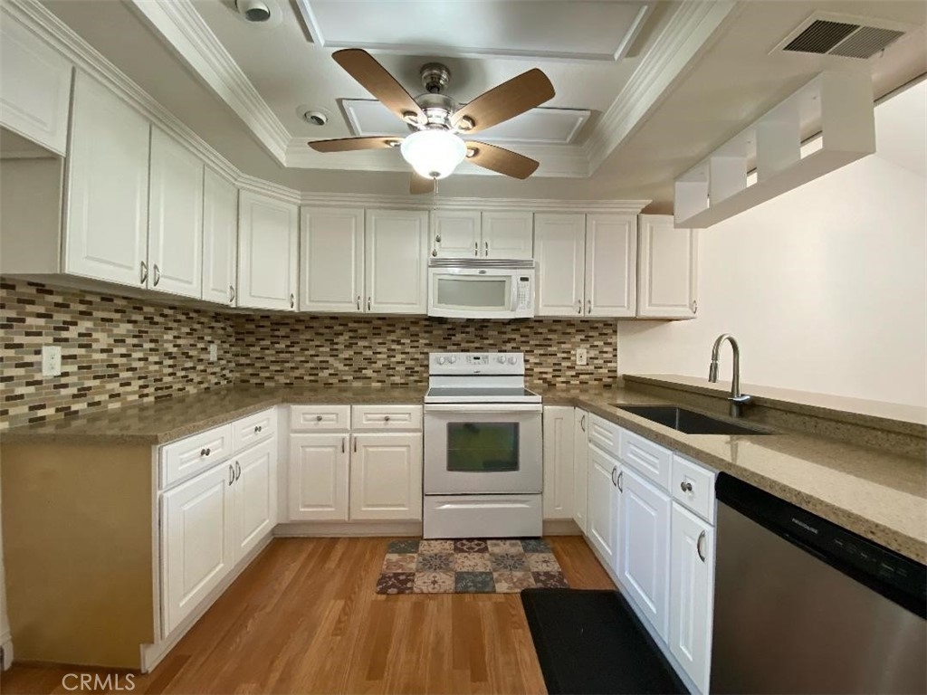LOWEST PRICE ... AS OF 7/07/22 ... Walking distance to South Coast Plaza. Desirable and private location in beautiful Village Creek Townhomes community. This move-in ready spacious townhome looks and feels like a single family home. Newer white kitchen cabinets with granite counter tops which opens to the dining room. Light and bright vaulted ceilings in living room with fireplace and a view to the creek. Both bathrooms have marble floors and shower enclosures. Central A/C and heating system, direct access to oversized 2 car garage with room for workout area or workshop. This community has a sport court, club house and a pool and spa to enjoy this warm days ahead of us. Great place in a convenient location near shopping and entertainment. Easy access to 405, 55 and 73 fways and just 15-20 minutes to popular SoCal beaches. This spacious, light and bright townhouse is ready to move in. Ask about seller financing