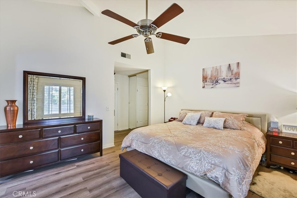 South Coast Metro beauty! This move-in ready end unit townhouse looks and feels like a single family home. Welcome home to the bright, open floor plan, vaulted ceilings, gorgeous luxury wood-like vinyl flooring, stunning built-ins in living room, fireplace with granite surround (with remote for on/off), updated kitchen/baths, master suite with vaulted ceilings, walk-in closet and oversized bathtub. The second bedroom has endless possibilities. There's a loft area that's perfect for a kids play room or even a third bedroom! New carpet upstairs, dual pane windows throughout, home professionally painted within the last two years and still looks impeccable. A/C, oversized garage with room for work out area or workshop. The community has a pool, spa and sport court. Village Creek Townhomes are the best value in Costa Mesa (home is on leased land)!