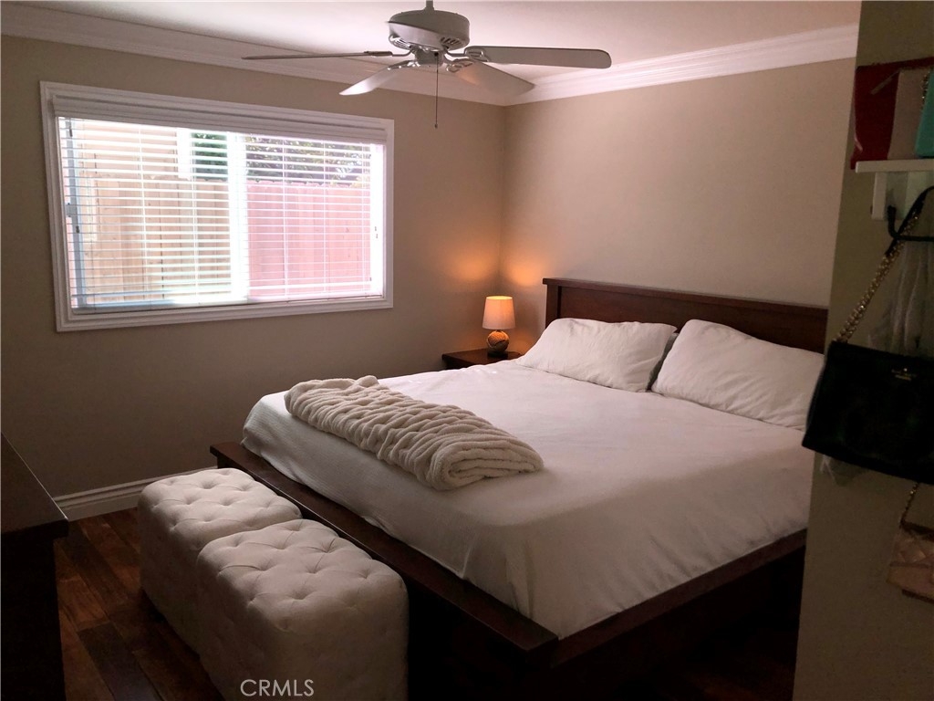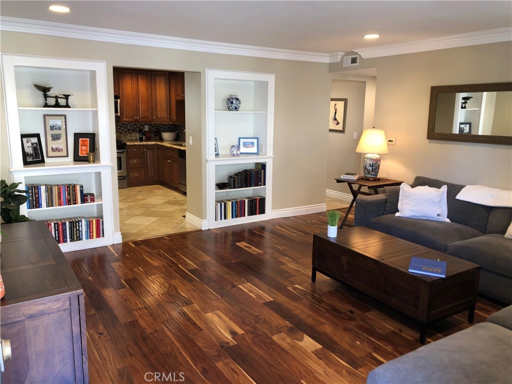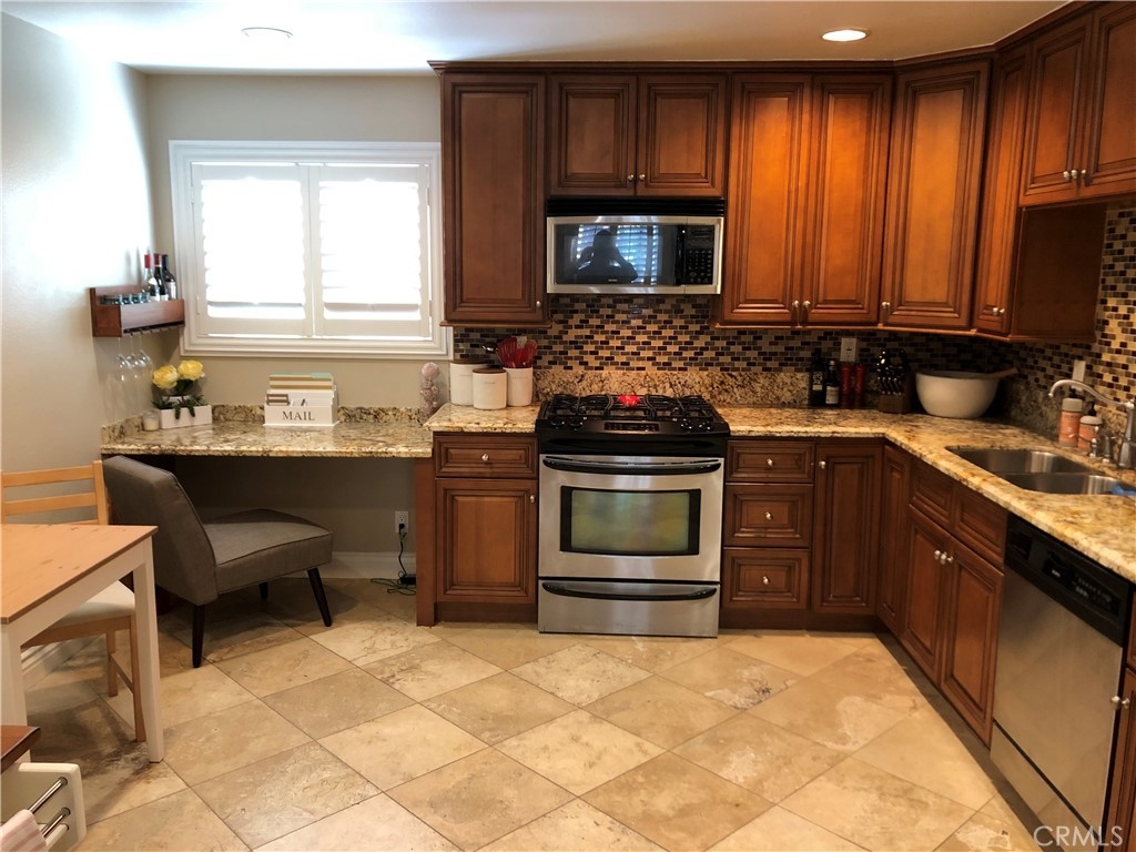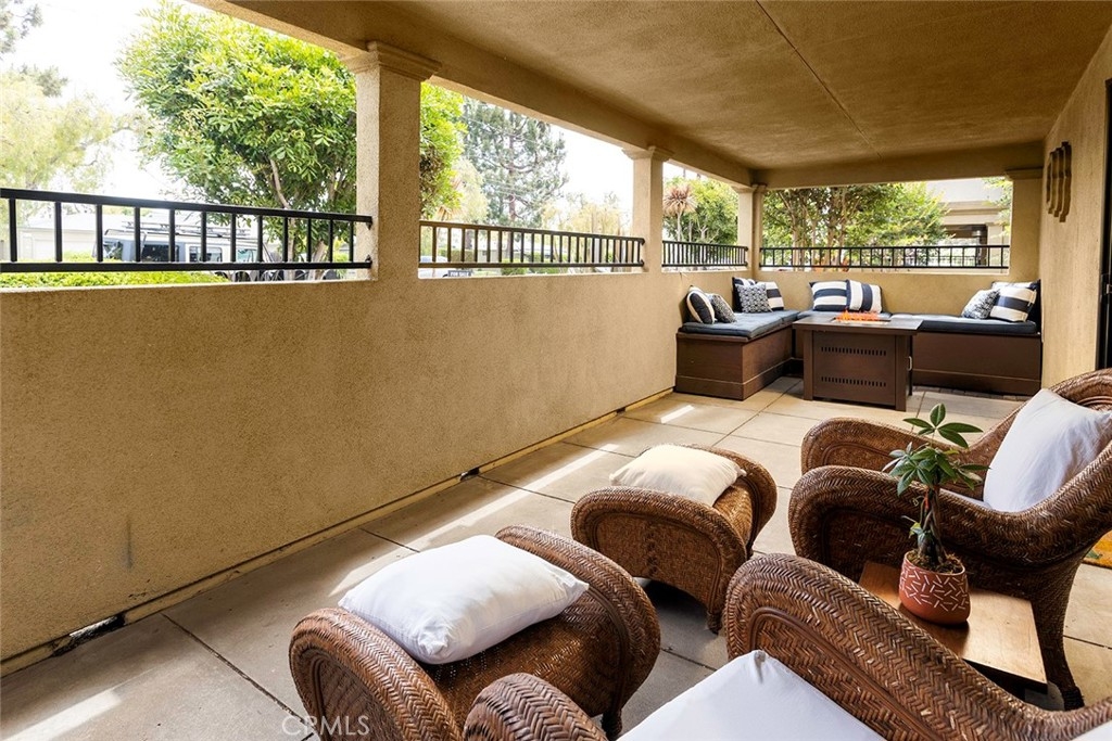 This ground floor condo is located in the quaint 8-unit development of Vista Springs within Eastside Costa Mesa. As a former model, this move-in ready unit offers a custom kitchen with granite countertops, glazed maple cabinetry, decorative tile backsplash, stainless steel appliances, brushed nickel fixtures and travertine flooring. The generous interior space includes a living room and 2 bedrooms complete with wood floors, crown molding, baseboards and sizable closets. Like the kitchen, the full bathroom includes granite countertops and travertine flooring that extends into the laundry area. Outside, amenities include a private 300 square foot covered patio with fire table and under-seat storage, and 2 dedicated off-street parking spaces. Low HOA payments include water, trash, insurance, landscaping, exterior maintenance and special reserves. Located less than 1 block from the Back Back Nature Preserve & Brentwood Park with easy freeway access and good proximity to a variety of dining and shopping options.