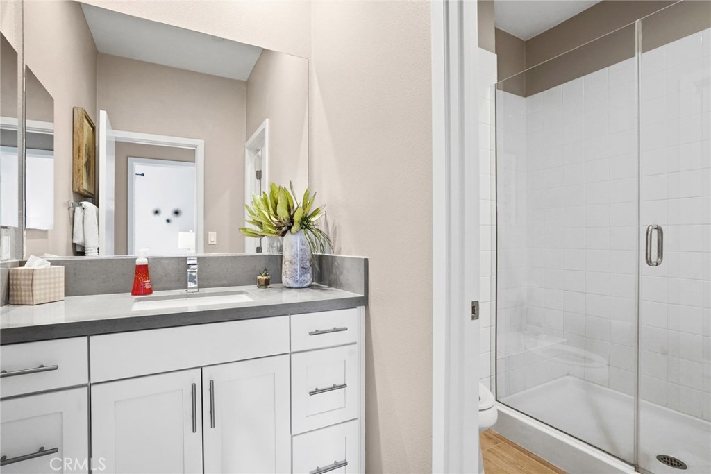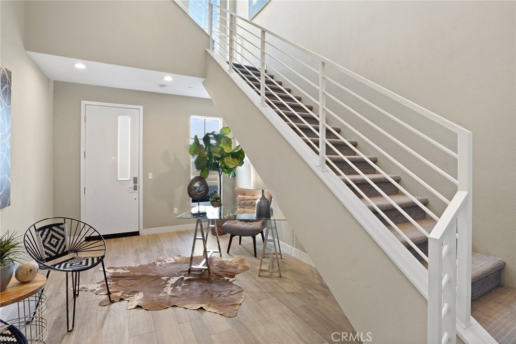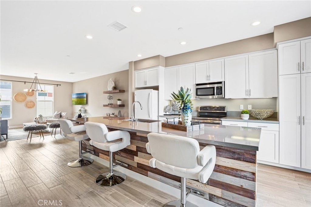 Conveniently located in the heart of Westside Costa Mesa and only minutes from the beach, this modern live/work loft offers two bedrooms plus a downstairs work space, one full bath, one car attached garage and an additional permitted parking space. The top level living space has been highly upgraded featuring an open and spacious floorplan with city lights and mountain views. This energy efficient property was constructed with dedicated solar panels, a Nest thermostat system and dual-paned noise-reducing windows throughout. The open concept kitchen is an entertainer's dream highlighted by an oversized center island with custom wood front paneling, gray Caesarstone counters, stainless steel appliance package and extensive storage space. Long-planked "wood grain" tile flows throughout the bathroom, common area living space and downstairs work area. In close proximity to many of the Westside's newest restaurants, craft coffee houses and a revitalized night life, this property is absolutely move-in ready and ideal for the live/work lifestyle that has become so desirable in recent times.