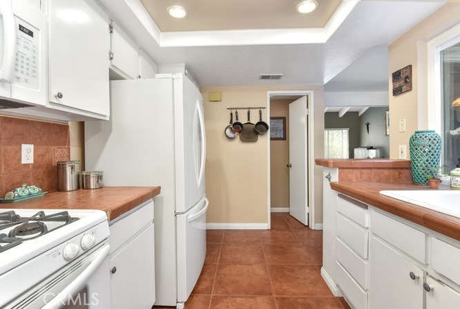 Welcome Home! Westbluff Village is truly a hidden gem located in the heart of Costa Mesa Bluffs with ocean breezes. Beautiful & Spacious 2 bed, 1 ¼ bath with 2 car direct access garage. This home is one of the best interior locations in the community with a large grass area and beautiful garden and pool nearby. Bike or Walk to the Beach through the Talbert Regional Park Trail with Direct Access from this Highly Desired Neighborhood. Private enclosed yard great for BBQ's and entertaining! Additional highlights include New double pane windows, Central Heating & Scraped Ceilings. Beautiful Kitchen has Paver Tile Flooring, Countertops, & Backsplash, Gas Stove, Dishwasher, Built-In Microwave, and Atrium Views from Window Above Sink. Large Master Bedroom has Vaulted Open Beam Ceiling, Walk-In Closet, Ceiling Fan, and Slider to Private Balcony with Views of the community. Remodeled Bathroom with 2 Separate Vanities with Granite Countertops, Linen Cabinets, Tile Floor, & Tub/Shower Combo with Tile Surround and Clear Glass Enclosure. Located minutes to the beach, shopping & fine dining.