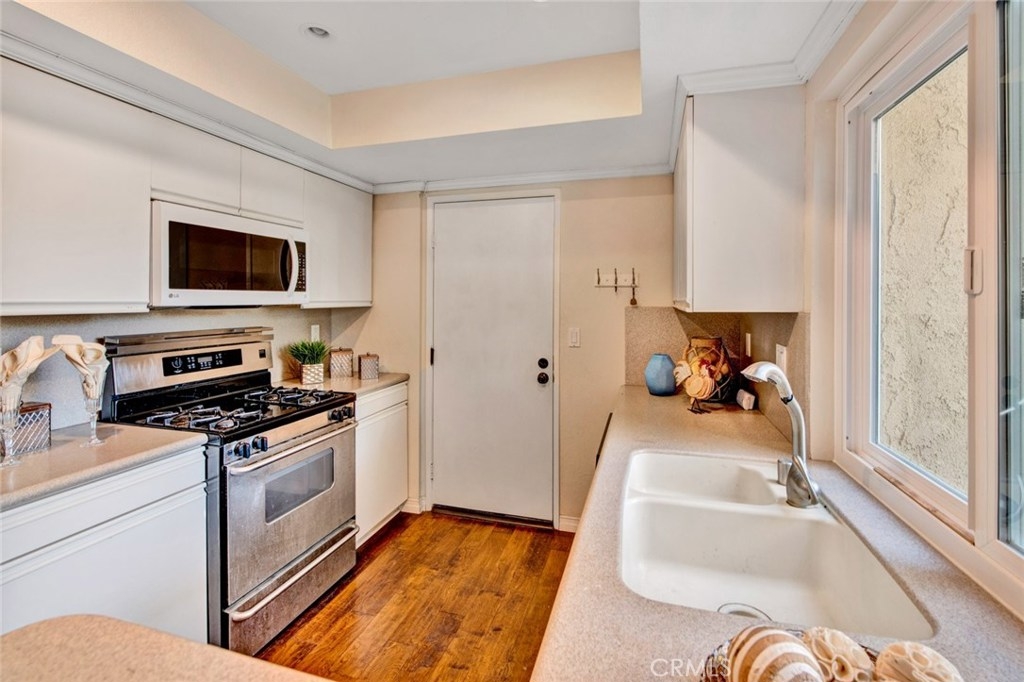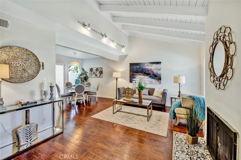 Fresh, high-end property hits the market in West Side Costa Mesa! The prime location of this end-unit Town Home in the Westbluff Village and its close proximity to parks, the Talbert Regional Nature preserve, endless trails and the beach guarantees it won't last long before a nature lover snaps it up. Over-sized bedrooms and 1.5 baths provide ample space with a breezy open floor plan, and charming accents such as a fireplace and wood beamed ceilings. You'll find a separate dining area and the kitchen has direct access to a 2 car garage. The Master suite showcases vaulted ceilings, a private balcony, and a large walk-in closet. With 3 outdoor areas, the living space is extended for endless possibilities! Out front is an enclosed private patio for BBQ's and there is also a back patio. Hardwood floors and newer dual-paned windows complete the look of this move-in ready home! Great HOA with community pool and spa and a private gate to the parks await!