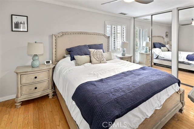 Experience a breezy, open atmosphere with this stylish home as soon as you walk through the front door. The vaulted ceilings and attached garage compliment this open floor plan. Gorgeous tile floors, recessed lighting, and plantation shutters enhance the modern chic of this charming living space. Notice how the living room is open and bright - multiple windows flood the area with natural light. The gas fireplace is an added bonus. The second level includes an updated kitchen, quant breakfast nook and a formal dining room. The galley-style kitchen features ample cabinet space with stainless steel appliances and tile floors. The nearby dining room boasts plantation shutters and hardwood floors. The master bedroom exudes a casual elegance with hardwood floors, crown molding, plantation shutters, and two sets of large mirrored closet doors. The attached bathroom allows for more privacy and features rich tile floors with granite counter. The other bedrooms are both roomy and versatile with plantation shutters and generous closet space. This radiant home also includes a private patio space that is ideal for outdoor cooking and relaxing. This king-size attached garage can also be used for storage space. This beautiful, peaceful complex feature plenty of lush landscaping and a community swimming pool. Welcome home to your new secluded paradise!