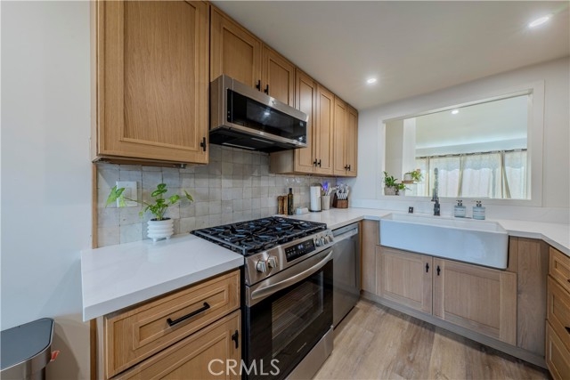 Welcome to this beautifully renovated two-bedroom, two-bathroom townhome located in the desirable Monticello community of Costa Mesa. Every detail has been thoughtfully updated, featuring newly installed white oak flooring, custom doors, windows, and cabinetry throughout. New central air conditioning was added for your comfort. Enjoy both indoor and outdoor living with a private front patio and a spacious enclosed back patio—perfect for entertaining or relaxing. The attached two-car garage includes convenient washer and dryer hookups. The gourmet kitchen is a chef’s dream, showcasing designer white oak cabinets, handmade Moroccan Zellige tile, and premium Bosch appliances. The inviting living area is ideal for gatherings, featuring a vaulted ceiling, custom lighting, a newly renovated fireplace, and a stylish dry bar complete with a built-in dual-zone beverage and wine refrigerator. Both bathrooms offer a spa-like retreat with custom cabinetry and designer tile work. As part of the Monticello Townhome Community, residents enjoy access to resort-style amenities including a sparkling pool, relaxing spa, and recreational areas.