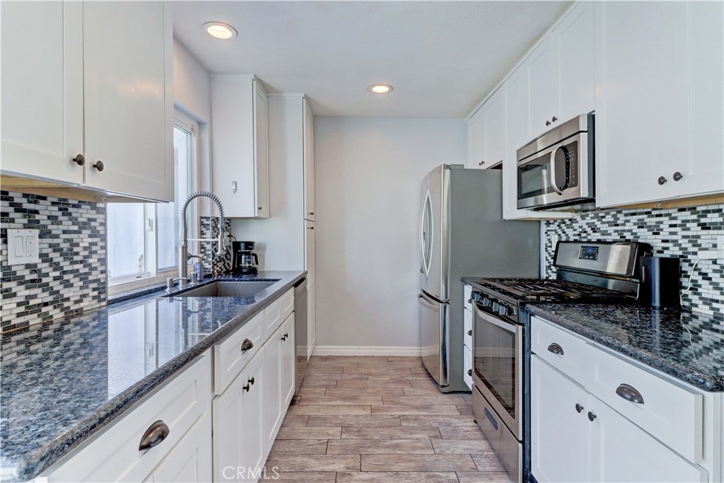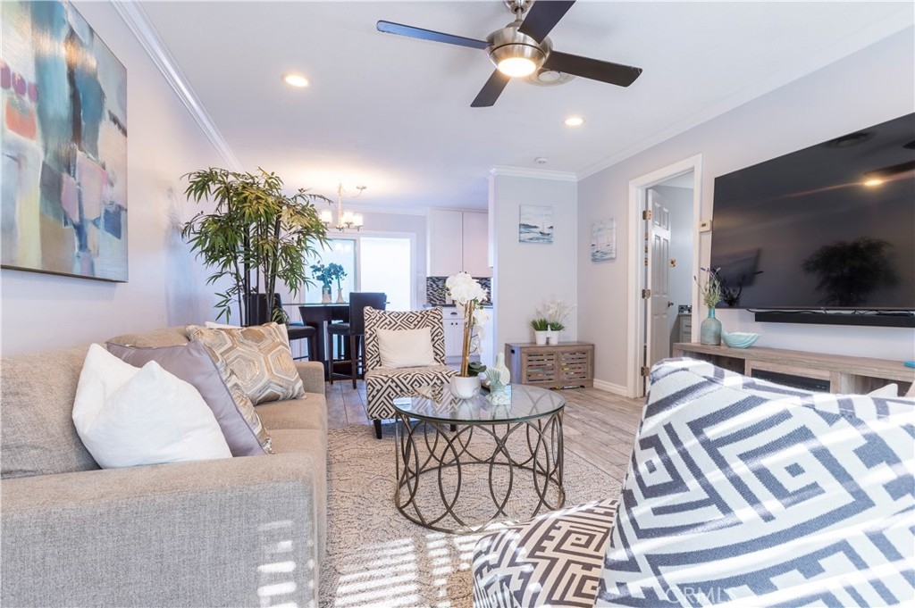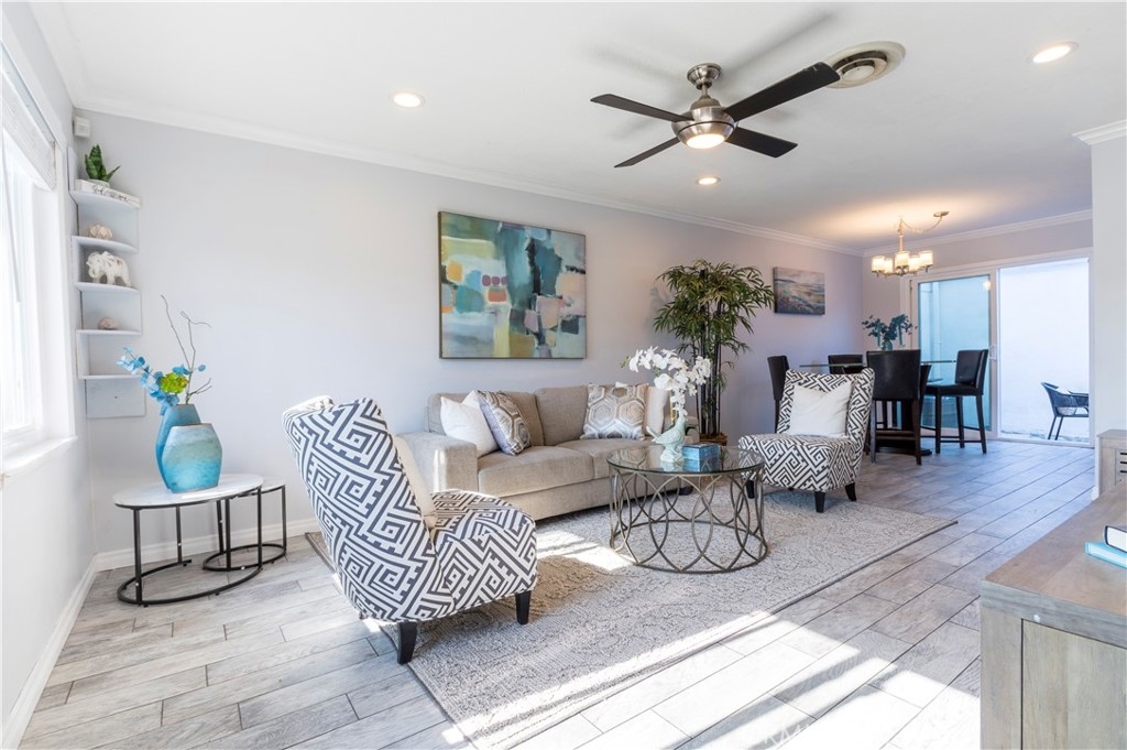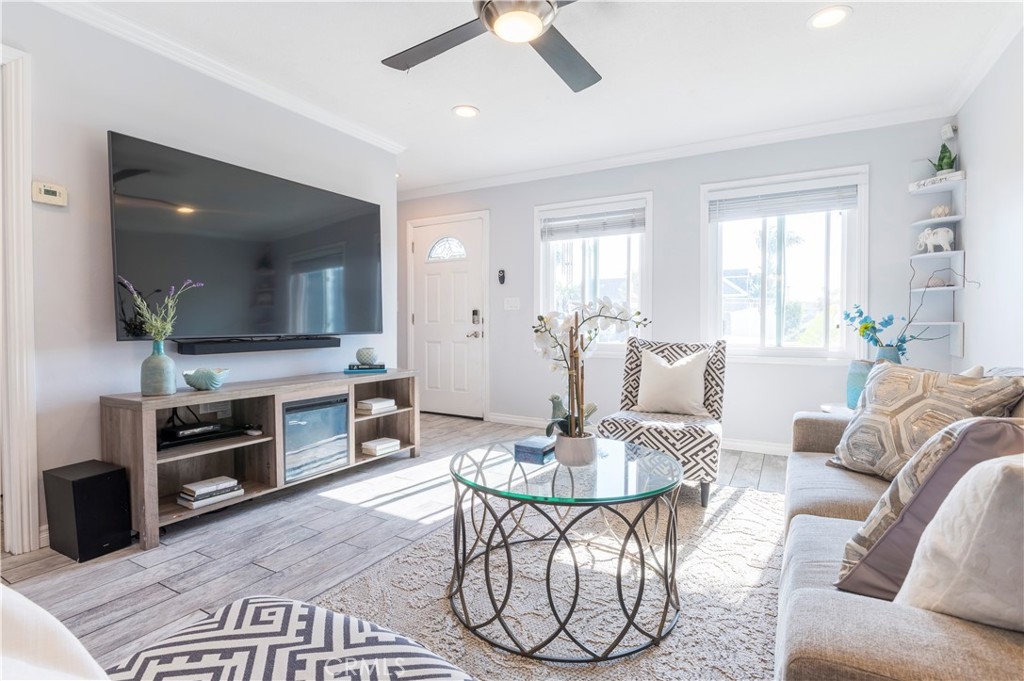 Motivated sellers - moving for work! Be in your new home for the holidays! Investors welcome! This home offers a great layout. The large sun-filled living room flows into the dining area and beautifully updated kitchen with granite countertops, cool tile backsplash, soft close modern white cabinets, large pantry and stainless steel appliances. A large bathroom with remodeled shower is also conveniently located on the first floor. Upstairs there are 3 bedrooms. Don’t need 3 bedrooms? Use one as an office for your work at home needs. The upstairs bathroom has a contemporary vanity, lighting, fixtures and backsplash. Outside, the private patio provides direct access to the laundry area and large 2-car garage plus one parking permit comes with the home. This home also has a front yard, which many residents have converted into additional patio/yard space (with HOA approval). Other notable perks include: recessed lighting, crown molding, ceiling fans, smooth ceilings, southwestern exposure, cool ocean breezes, dual pane windows, plenty of storage and tile flooring that looks like wood and compliments the newer neutral paint. Residents of the popular Monticello Townhomes also enjoy access to a 2 community pools and spas as well as a Clubhouse that is available to rent for parties and events. Those who live in this neighborhood are quick to share what they love about it: the convenient location, the sense of community, the unbeatable value, and so on. That’s part of the charm and a reason so many people make Monticello Townhomes their home. This pet-friendly community is close to local schools too. It also has easy access to local amenities, dining, and entertainment options like John Wayne Airport, world-class shopping at South Coast Plaza, and the beach. Looking for freeway access? Here you go - this home is 2 minutes from the freeway yet doesn't get the traffic noise. Also, consider the possibility of using it as an investment property, with comparable units renting for over $4,000/month and 2 colleges nearby plus a strong rental market. Enjoy the laid back beach lifestyle at a lower price than the beach cities. FHA and VA approved complex. No Mello Roos or land lease. Low HOA dues include water and trash. Priced well below comps - check out the model match that just sold for $988K and enjoy instant equity! Make an offer - this deal is too good to miss.