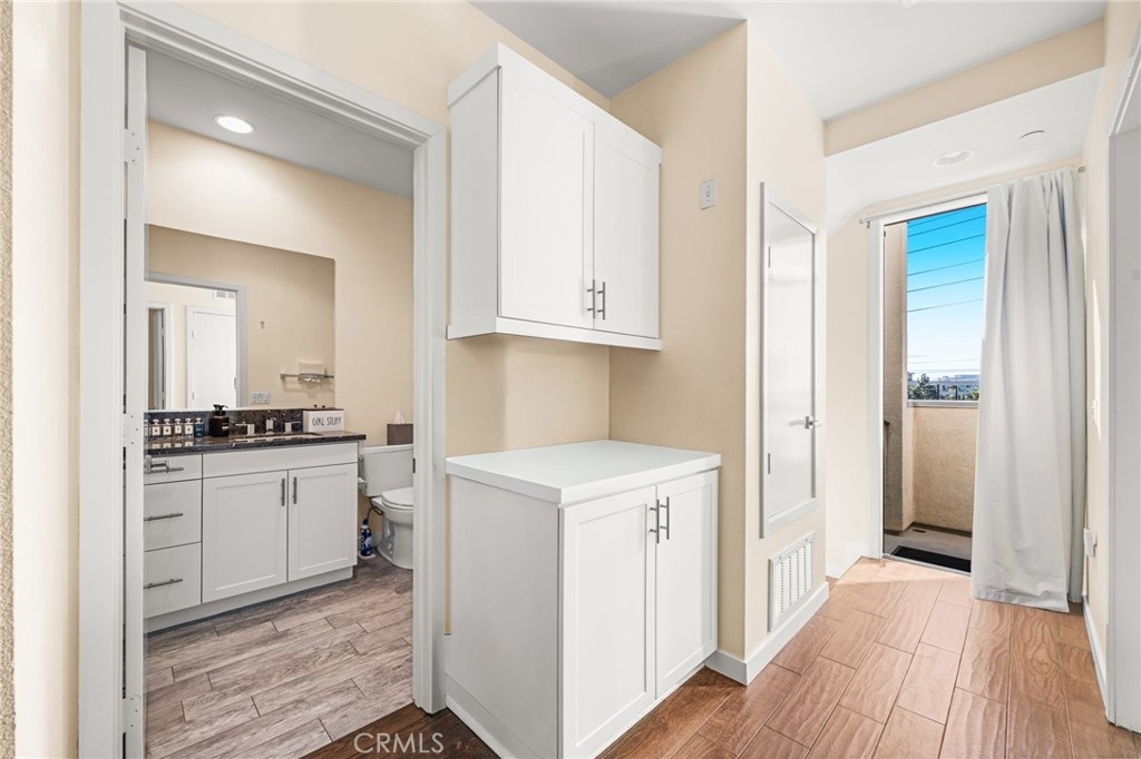 Rare residence at Level One offering an ocean view! Level One is a striking urban community in a premier coastal setting, providing effortless access to everything from the sandy shores of Newport Beach to Lido Village and John Wayne Airport. Abundant windows flood the home with natural light, creating a bright, airy, and open interior throughout. The versatile first floor is commercially zoned—ideal for operating select businesses—or can easily serve as a play space for children. A roll-up garage door opens to welcome ocean breezes, making it perfect for hosting board meetings, while the commercial-grade bathroom is designed for convenience, whether accommodating guests or rinsing off your dog after a beach walk. Whitewashed, high-quality wood flooring spans the main living areas, enhancing the home’s open-concept design. The kitchen is lined with extensive cabinetry and showcases a stunning waterfall island, full backsplash, and GE Monogram stainless steel appliances. Both upper-level bathrooms have been thoughtfully upgraded, and the primary suite features a walk-in closet, dual vanities, and an oversized shower. The garage is finished with epoxy flooring and customized storage solutions to maximize functionality. The expansive rooftop deck offers sweeping ocean and mountain views—perfect for enjoying the Huntington Beach Airshow in the fall, Fourth of July fireworks, and the best of coastal living from your own private retreat. Additional amenities include security cameras, surround sound, and a robust security system.