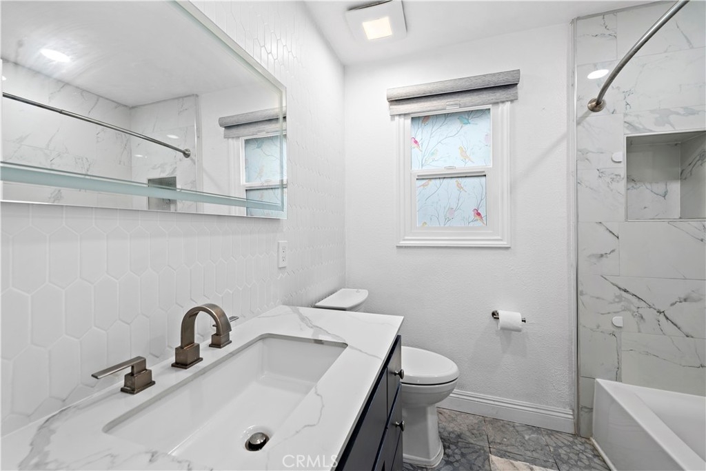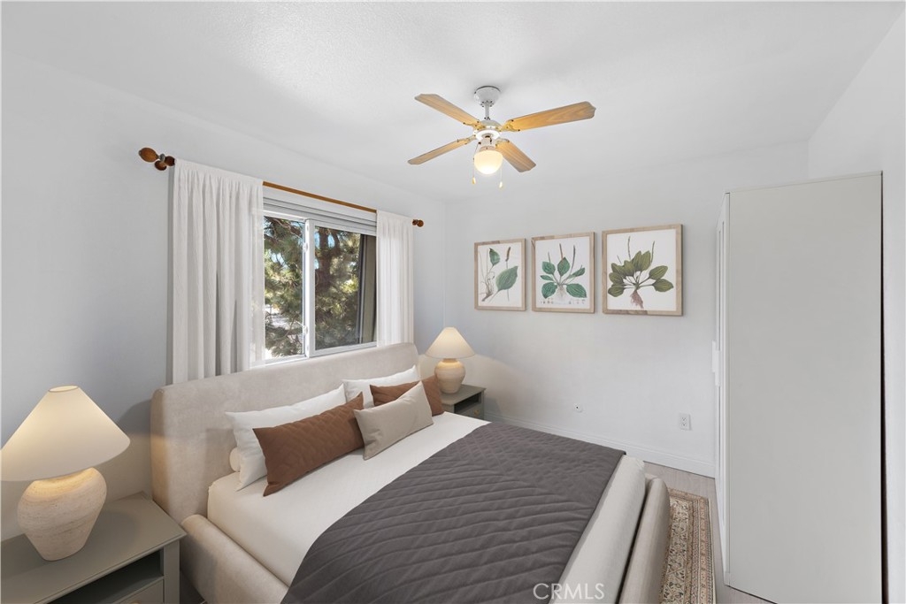 LOW HOA DUES ONLY $225 PER MONTH! Welcome to Mesa Verde Villas, where coastal charm meets modern convenience! This beautifully updated 2-bedroom, 1.5-bathroom corner-unit condo offers privacy and style, featuring fresh paint and new flooring throughout. With only one shared wall, this home feels like a private retreat within the community. The first floor is designed for ease and efficiency, featuring a rare half-bath, a brand-new oven and dishwasher, and a recently installed LG Induction Cooktop with advanced features that make cooking a delight. Upstairs, the primary bedroom is a true sanctuary with a spacious cedar-lined closet, providing a naturally aromatic ambiance that enhances the overall atmosphere. Both bedrooms and the full bathroom have been thoughtfully upgraded to blend comfort with style. This condo includes an attached 1-car garage equipped with laundry facilities, plus an additional carport. Step out to your private patio, accessible via sliding glass door, designed with low-maintenance interlocking rubber tile flooring—ideal for relaxing or hosting small gatherings. Community amenities are just a short walk away, including a refreshing pool and a BBQ area, perfect for socializing with friends and family. Conveniently located close to the 405 Freeway, around the corner from TeWinkle Middle School, and only 7 miles from the iconic Huntington Beach Pier, this property provides the perfect blend of comfort and coastal living.