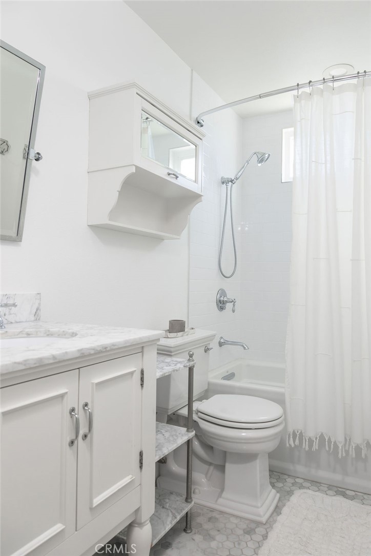 Welcome to this impeccably remodeled 3-bedroom, 2.5-bathroom residence, privately positioned at the deepest part of the community for enhanced tranquility. Thoughtfully designed for modern living, the open-concept kitchen showcases a striking tile backsplash, custom cabinetry, quartz countertops, designer lighting, instant-hot and water filtration, and brand new stainless steel premium appliances—perfectly suited for both everyday living and entertaining. The kitchen opens to an inviting living room that seamlessly connects to a covered outdoor retreat, complete with a bi-folding window with attached bar, and an expansive side and rear yard—creating a true indoor-outdoor lifestyle. Natural light pours in through brand-new windows and sliding doors, elevating the home’s bright, airy ambiance. The primary suite is a refined sanctuary, featuring vaulted ceilings, a spa-inspired ensuite with dual vanities, and a spacious walk-in closet with custom built-ins. No detail has been overlooked, with upgrades including a two new electrical panels, repiped plumbing, under-cabinet kitchen lighting, all new polished nickel plumbing fixtures, new window treatments including custom electronic shades in the primary suite and fresh paint throughout. Ideally located just moments from top-rated schools and the premier shopping and dining along Westcliff & 17th Street, this exceptional home offers the perfect blend of style, comfort, and convenience.