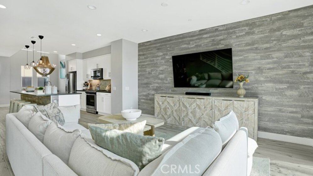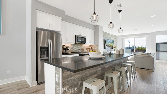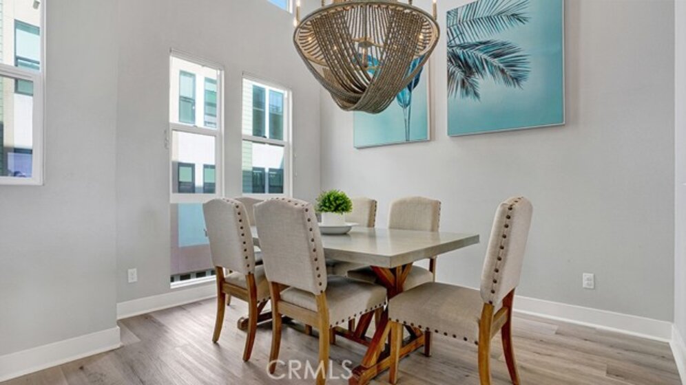 Introducing 1650 Topanga Avenue, a stylish residence perfectly situated at the edge of the sought-after 17 West community in Costa Mesa. With four levels of thoughtfully curated living space, this home is one of the rare offerings within the development featuring four bedrooms and four-and-a-half bathrooms, creating exceptional flexibility for an owner-occupant or investor alike. The entry-level offers a private bedroom with an en suite bath, ideal for guests, or a home office. On the second floor, dramatic 18-foot ceilings define the dining area, where natural light pours through oversized windows, highlighting a striking designer chandelier. The open-concept layout connects the living and dining spaces to an upgraded kitchen outfitted with quartz countertops, stainless steel appliances, and an oversized island that invites both casual meals and lively entertaining. Custom window treatments, upgraded vinyl flooring, and modern designer finishes create a sense of effortless style throughout. The third level is home to a well-appointed primary suite with a spa-like bath and ample closet space, along with an additional guest bedroom with its own en suite bathroom. The fourth floor offers a flexible retreat featuring yet another en suite bedroom and a bonus space perfect for a home gym, office, or media room. From here, step outside to a large rooftop deck with views across Costa Mesa towards the mountains in the distance as well as south facing sight lines towards the ocean. Outdoor living spans across three distinct levels of the home, offering multiple options to relax, entertain, or unwind in the fresh coastal air. Every finish and feature has been selected with quality and efficiency in mind, including spray foam insulation, dual-pane low-E windows, a tankless water heater, and a high-efficiency HVAC system. Interior touches like quartz surfaces, designer lighting, tile accents, and custom built-ins elevate the home beyond the expected. Residents of 17 West enjoy a vibrant and social environment with amenities such as community barbecues, a bocce ball court, dog run, playground, and fire pits. Located just minutes from the beach and surrounded by some of the best shopping, dining, and recreation Orange County has to offer, 1650 Topanga Avenue is a compelling opportunity to own a standout home that blends turnkey luxury, investment potential, and an unbeatable lifestyle location.