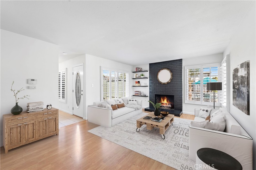 Enjoy views of the vast greenbelt and pool from this tastefully upgraded three bedroom two bath end unit that rests in a quiet, premier location within the Vendome Community. Main floor living area is filled with natural light and features plantation shutters, gas fireplace, remodeled kitchen with stone counters, dining area that opens to private patio and downstairs master suite with updated bath and walk-in shower. Two additional bedrooms are upstairs with generous closets, ceiling fans and full bath. Single car garage with ample storage and guest parking nearby. The coveted Vendome Community was converted from mid-century apartments to townhome-like condominiums with plans by local architect Brion Jeanette. The Homeowners Association is in the process of painting the exterior of all units. With low HOA and no Mello Roos, this highly desirable home is conveniently located across the street from the new Donald Dungan library and the Downtown Community Recreation and Aquatics Center, while only minutes from the city’s best dining, shopping, entertainment, parks and beaches of coastal Orange County.