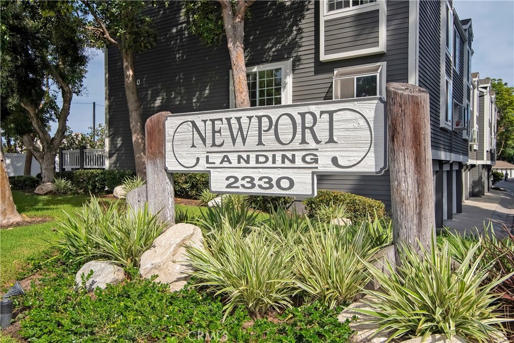 Nicely upgraded two-bedroom end unit situated in one of the best locations in Newport Landing. As you enter the home, you are welcomed by an open floor plan and a clean color palette. The kitchen was remodeled this year with brand new custom cabinets, recessed lighting and some new appliances. The living room offers high ceilings, a gas fire place, beautiful wood floors, a large picture window and a sliding glass door leading out to a relaxing patio. The large master bedroom features high ceilings, wood floors and an updated master bath with a beautiful walk-in shower. In the hall there is a full guest bath and inside laundry closet with a washer and gas dryer hookup. The large guest bedroom offers ample closet space and lots of natural light. The home features dual pane windows, plantation shutters, new hot water heater and freshly painted interior. Directly below the unit, is a large 2 car garage that has ample storage. Located in a relatively small community with 88 total units, two pools and two hot tubs. It is centrally located within walking distance to Newport Back Bay, parks, great restaurants, and OC Fair grounds. The location also provides easy access to 405, 55, and 73 freeways, John Wayne Airport, and South Coast Plaza. Welcome home.