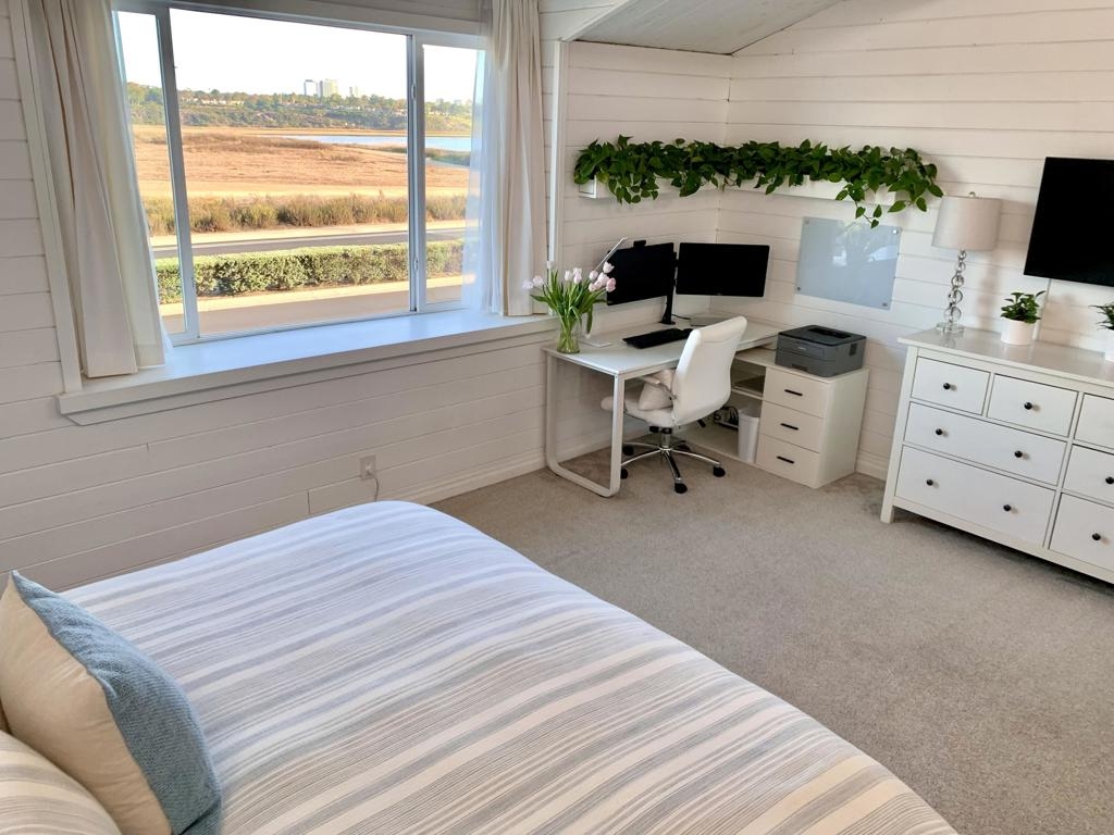 Located directly on Newport Beach border w/ water views of Back Bay Nature Preserve from large sun deck & all bedrooms - Panoramic view from North-east (radiant sunrises over Saddleback Mountain) to South-west (glowing sunset reflections over Fashion Island & glistening bay) - Location of Nature Preserve ensures unobstructed view of natural landscape - Back Bay Loop Trail showcases plants, flowers, birds, horses, cyclists, runners & more - Large Master Suite w/ vaulted ceilings complimented by abundant natural light w/extravagant walk-in closet, newly remodeled master bath (premium materials) w/double vanity & ventilating skylight for fresh ocean air - Pristine unit upgraded w/recessed lighting, new kitchen appliances, luxury vinyl flooring, carpeting, new paint, new toilets & modern grey quartz countertops - Downstairs patio for pets, BBQ, gardening, or storage - Street-facing front row unit w/ remarkable curb appeal shares only one wall w/ neighboring 6-unit development - Exterior (stucco, paint, roof & flashing) replaced approximately 6 years ago - Attached 2-car garage w/ large laundry area & large parking space at front of private community driveway - New Appliances: AC 2023 / Gas Furnace 2023 / Gas Water Heater 2022 / Samsung French-door Refrigerator 2022 / Water Filtration System w/ Water Softener & Reverse Osmosis 2021 - HOA pays Water, Trash, Landscape & Community Maintenance