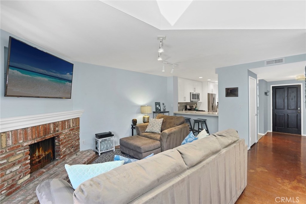 Welcome to 2554 Elden Avenue in Eastside Costa Mesa! This light and bright end unit property features a brand-new kitchen with shaker style cabinetry, white Quartz counter tops, stainless steel appliances and a designer tile back-splash. This well- designed open floor has a multitude of quality features including stylish flooring throughout, recessed lighting, built in storage underneath the stairs, a cozy brick fireplace, updated light fixtures, and an upstairs laundry closet. The over-sized master bedroom includes an enormous attic space for extra storage, brand new dual sink vanity with Quartz counters and shaker style cabinetry and his and hers mirrored closets. One car garage and one car carport is included. The recently renovated community has a sparkling pool and spa and picnic areas. Located within minutes of local beaches, shopping, easy freeway access and close to OC Fair Grounds, John Wayne Airport and the Back Bay.