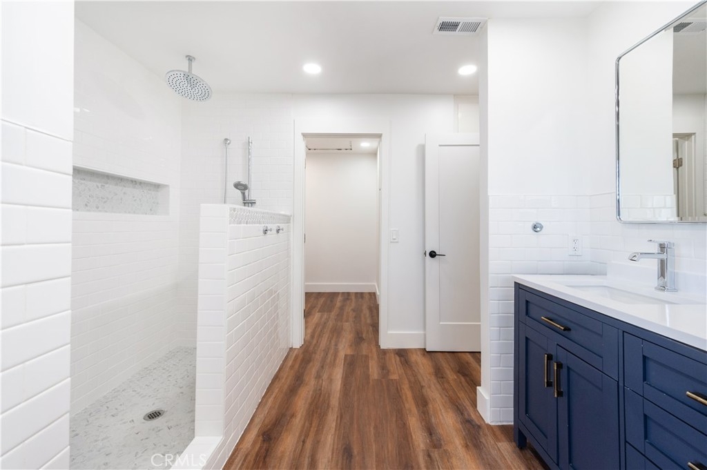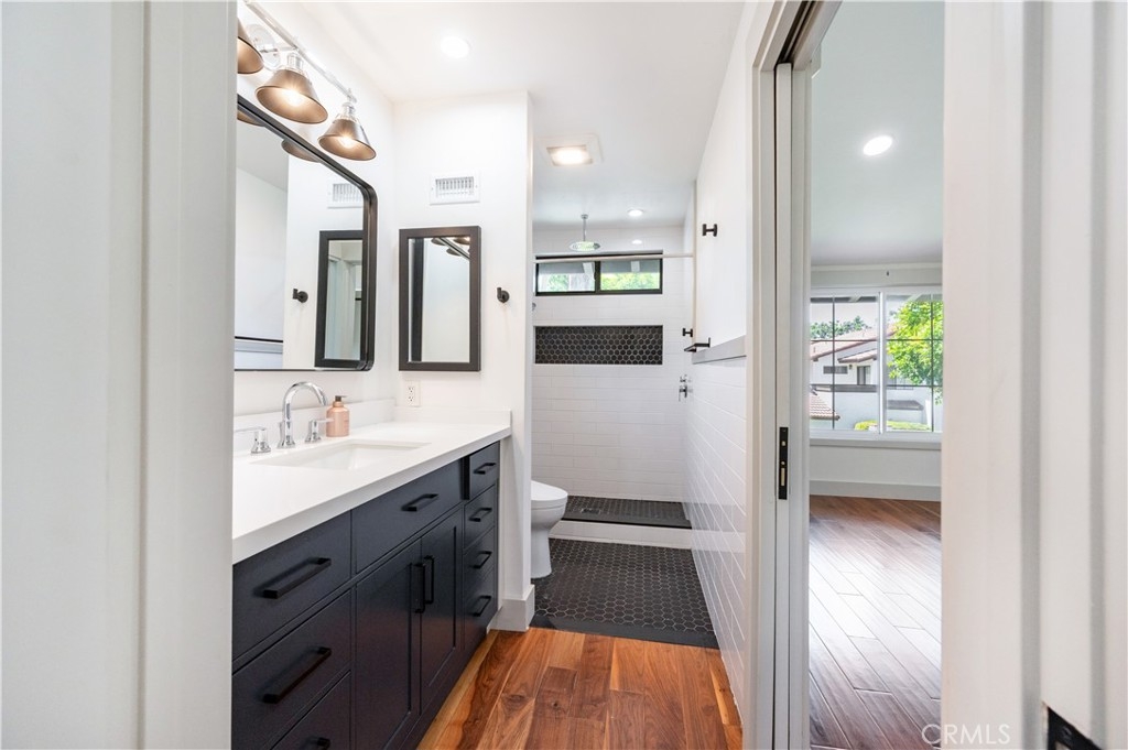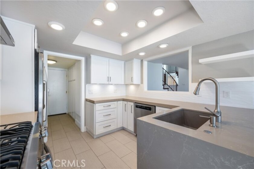 Welcome to this beautifully updated home in the highly sought-after Mesa Verde community of Costa Mesa. This light-filled 2-bedroom, 2.5-bath residence offers approximately 1,757 sq ft of thoughtfully designed living space, blending modern upgrades with a relaxed, coastal-inspired aesthetic. Step through an oversized entry door into a bright, open-concept living and dining area designed for comfortable everyday living and effortless entertaining. The remodeled kitchen features sleek quartz waterfall countertops, stainless steel appliances, abundant cabinetry, recessed lighting, and a charming breakfast nook that opens to the private patio. Enjoy seamless indoor-outdoor living in the fully enclosed patio space backing to a lush greenbelt—perfect for relaxing or hosting guests. Upstairs features a spacious primary suite and a secondary en-suite bedroom, both with walk-in closets. The primary suite offers a cozy fireplace, private balcony, and a beautifully remodeled bathroom with dual vanities, soaking tub, and separate walk-in shower. The secondary suite offers flexibility for guests, a home office, or additional living needs. Recent upgrades include new windows, central A/C, smooth-finish walls, recessed lighting throughout, refreshed bedroom spaces, a redesigned upstairs laundry area with brand-new washer and dryer, and tastefully renovated bathrooms with clean, modern finishes. The attached garage features epoxy flooring, an electric vehicle charger, and parking for two vehicles, plus two additional driveway spaces. Residents enjoy community pool and spa amenities. Ideally located near shopping, dining, golf courses, and just minutes from the beach—this is Mesa Verde living at its finest.