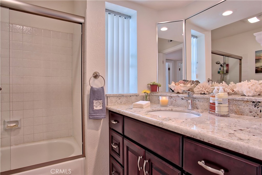 Prime view location in award wining Pentridge Cove - one of the best in the community! Spectacular views of numerous waterfalls, boulders, the pond, mature trees & plants from the large patio, living room, dining area & kitchen! Relaxing water feature (no chlorine) is perfect for outdoor dining, grilling & enjoying. Two large patio doors lead to your own backyard oasis - must see! Great views during the day & at night! Beautifully updated, light & bright with lots of natural light, wide 2 car garage with lots of storage, super clean, freshly painted throughout, 10' high ceilings, modern architectural features for creative decorating, newer stainless steel appliances. Master suite features large dual closets with upgraded mirror doors & organizers, separate tub & shower, new vanity with dual sinks & beautiful granite countertops, LED recessed lights. Maple colored flooring & updated six panel doors throughout, bedrooms have dual pane vinyl windows. Central air conditioning & heating, fireplace, washer & dryer, smooth ceilings, recessed lights, ceiling fans, coat closet & a storage closet in patio area & additional storage in the garage, 4" baseboards. Unique large driveway & plenty of guest parking. Community amenities include a pool & two separate spas, both hot & cold water is included. Great location close to The Lab, The Camp, South Coast Plaza, Segerstrom Center for the Arts, convenient freeway access to the 405/55/73 & John Wayne Airport. Please check out virtual tour!