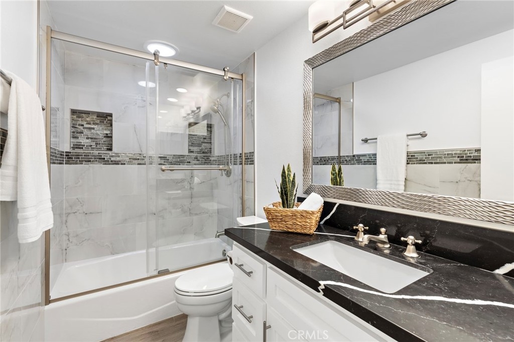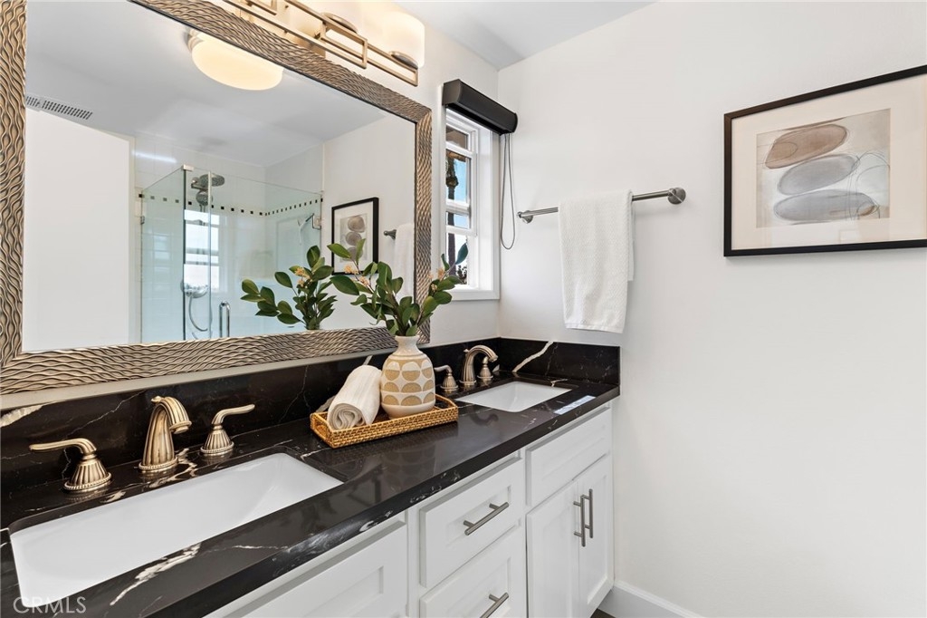 Elegant Resort-Style Living at the Mesa Verde Country Club Villas in Beautiful Mesa Verde!! Discover the epitome of refined living in the heart of Mesa Verde. Offering a Perfect Blend of Location, Lifestyle and Luxury —This Newly Remodeled and Upgraded Townhome is MOVE IN READY and is conveniently located next to the prestigious Mesa Verde Country Club. Throughout You Will Find NEW EVERYTHING!! From the Paint, Laminate Grey Flooring, Extensive Recessed Lighting, High Baseboards, Ceiling Fans with Light Kits, Ductless Split A/C & Heating Units in Every Room, Upgraded Dual-Pane "Magic" Windows and Sliding Doors, ensuring a modern aesthetic and Energy Efficiency Upgraded Electrical Panel. Downstairs' Features: This home features an open concept floor plan that is light, bright, and airy. The spacious living room flows seamlessly into a completely remodeled kitchen, adorned with granite countertops, custom cabinetry, and brand-new appliances. Enjoy culinary delights while basking in the sun through the kitchen sink’s picturesque window, a tiled private patio with an outdoor shower—perfect for entertaining, relaxing or rinsing off the sand after a day at the beach. A Spacious Primary Bedroom or Granny or Grandpa Room, Office, or a Private Retreat. A beautiful Grecian stone-walled wet shower/bathroom is to the right behind front door , and across the hall adds a touch of elegance. A large downstairs closet next to staircase leads to additional storage space with light to the right under the staircase. Upstair Features The Spacious Primary Suite boasts an expanded luxurious tile shower, a new vanity with granite countertop. Enjoy the fresh air with a window that opens and closes for optimal ventilation. Two additional bedrooms offer serene views, one featuring a slider to a private balcony, perfect for breathtaking westerly sunset views. The guest bath is equally impressive, showcasing a designer vanity and a stylish tub/shower combo with a clear glass barn doors. The Washer/Dryer hkups & Utility sink are located in the 2 car garage. Security is paramount with a gated courtyard entry. This home is classified as a single-family residence, making it eligible for FHA or VA financing. Remember to show the client out the back patio and to the right, follow path to access to the pool, jacuzzi and cabana. Key is on small table. This exceptional property is just a short drive or bike ride to the stunning beaches of Southern California.
