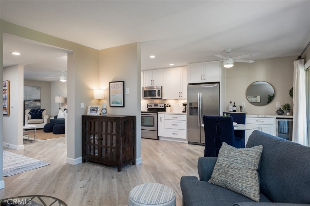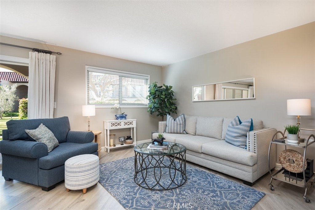 Prepare to be wowed as you enter the gated courtyard at this rarely available Mesa Verde Country Club Villa. The home has been opened up to give a light and bright expansive feel. There are two living areas which gives flex space for how you want to use it. The new kitchen boasts shaker style cabinets with soft close features, stunning quartz countertops with a perfect waterfall edge, breakfast bar, under cabinet lighting, penny tile backsplash, stainless appliances, recessed LED lighting, the list goes on! Separate bar area with built in wine fridge. Newer installed plank flooring is laid on the diagonal. All newer windows and newer patio doors. The 3 different outdoor spaces include courtyard, covered patio overlooking the landscaped green space and a large balcony off of the primary bedroom. The 2 baths have been upgraded with granite countertops, under mount sinks and new tile in the shower. There's even a new insulated garage door with direct access and a new hot water tank. Wonderful community pool and spa just steps away. Don’t miss it!
