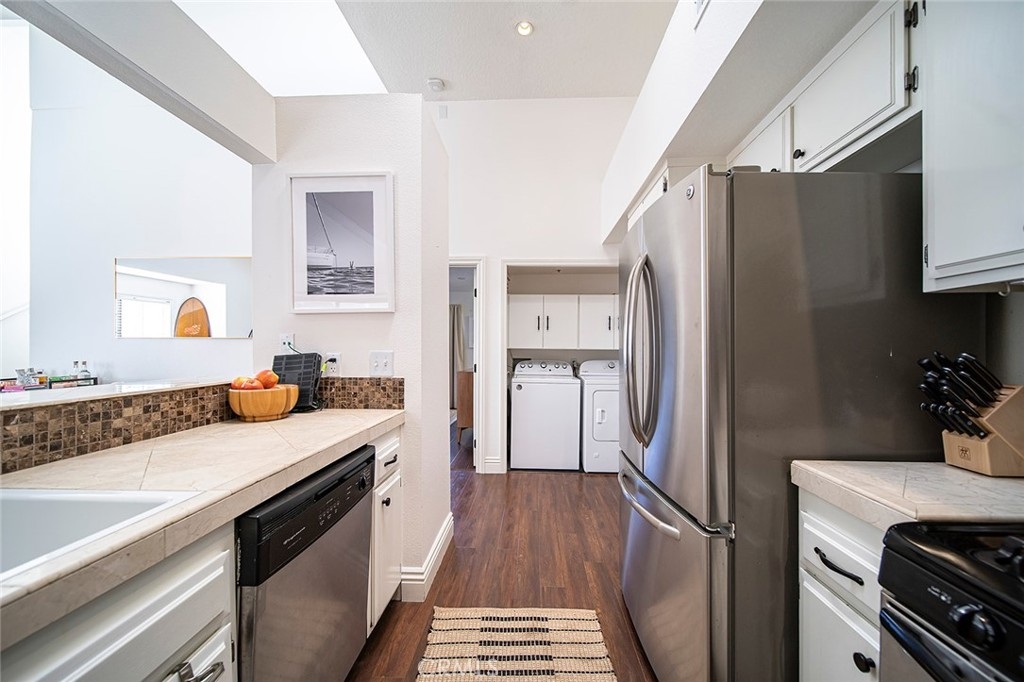Gorgeous 2 Bedroom 1 Bath condo waiting for you in convenient Central CM. Upon entry, you'll instantly notice the vaulted ceiling open concept floor plan radiating an abundance of natural light throughout. The Living Room w/fireplace allows slider access to the spacious front patio area for your entertainment or relaxation. The Kitchen is equipped with stainless steel appliances, dual sinks, pantry, & breakfast bar. The primary main floor Bedroom has a large Vanity area, bathtub/shower combo, walk-in closet, and slider access to balcony with storage closet. Up the staircase sits a private 2nd Bedroom. Some of the many favorable amenities you'll appreciate include: Interior laundry closet, central AC, ceiling fans, newer laminate flooring, and ample cabinet space. The HOA is nearing completion of a sharp exterior face-lift which pairs well with the gated subterranean community garage with 2 reserved stalls as well as 2 permits for guest parking. Central CM allows for close proximity to freeways, Triangle Square outdoor mall, and the bustling beaches & shops of Newport!