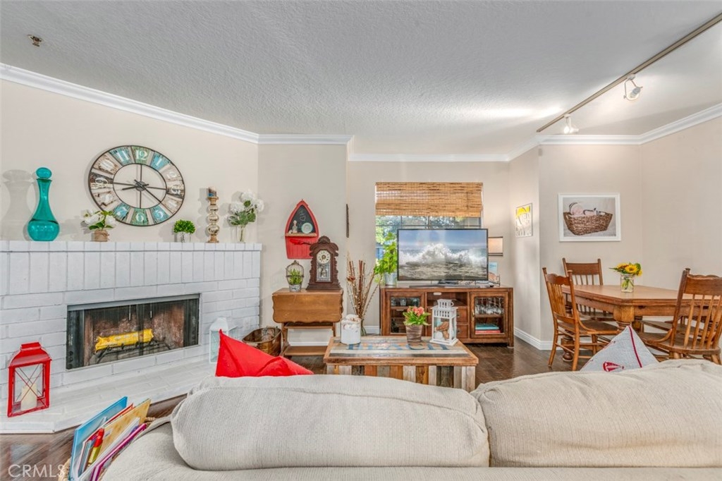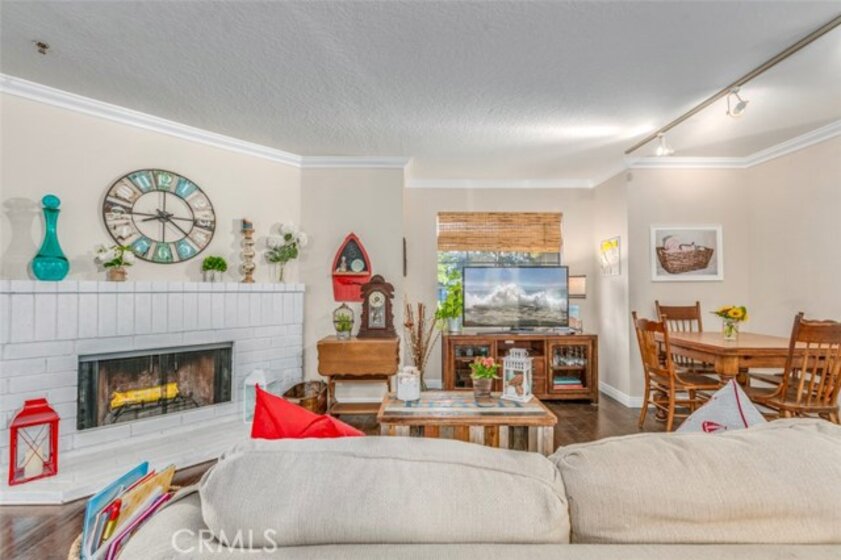 Beautiful single story condo located within Carol Pointe radiates pride of ownership. Home features a welcoming open living room with large white brick fireplace, crown molding, wood flooring and large sliding glass door entry to cozy private patio area. Kitchen features ample storage, custom cabinet drawers, recessed lighting, granite counter top, dual under-mount sink, and tile flooring. Master bedroom features abundant space, crown molding, wood flooring, and large picture window providing ample natural lighting. Bathroom features granite counter top, custom vanity mirror and separate toilet, shower and bathtub room. Other features include LED lighting and indoor laundry area. Located near Triangle Square, Newport Beach, South Coast Plaza and easy access to the 55 Fwy.
