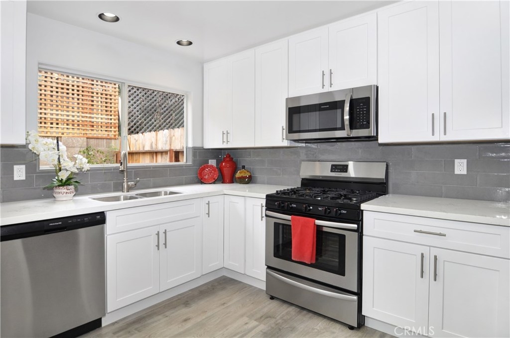 East Side Costa Mesa refreshed townhome only a half a block to Upper Back Bay with its miles of trails and scenic vistas. This Woodstream home has just received all new flooring, paint, kitchen cabinets, counters and appliances. Situated in arguably the best location within the community being an end unit with ample guest parking and across the drive from the community pool. Woodstream also has wonderful streams running through the community. Amenities include a good sized patio, mirrored closest doors, attached 2-car garage with new smart opener, walk-in master closet, jetted bathtub in upstairs hall bath, ambient fireplace, mini wet bar, spacious master and a whole-house fan to keep you cool on those summer nights. Easy access to Back Bay trails, Muth Interpretive Center, Orange County Fairgrounds and 17th Street shopping and dining. FHA approved community.