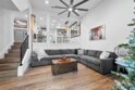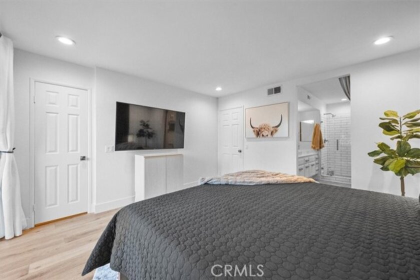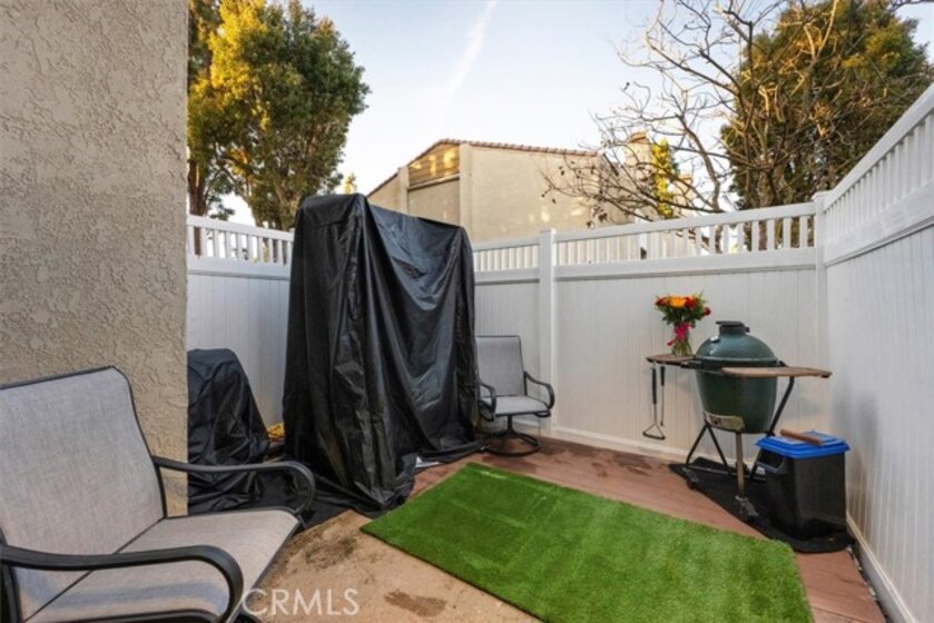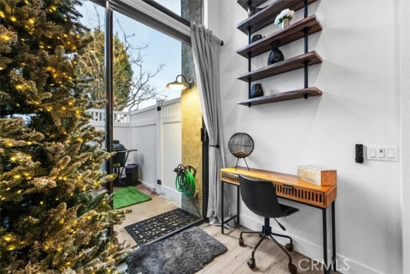 Beautiful End Unit with Park Views in Wilson Park Townhomes. Welcome to this highly sought-after end-unit townhome overlooking Wilson Street Park in the heart of Costa Mesa. Offering no one above or below, this updated 3-bedroom, 3-bath tri-level home spans 1650 sq. ft. and is filled with natural light, soaring ceilings, and stylish modern finishes. The main level features a spacious living room with vaulted ceilings, a cozy gas fireplace, gorgeous luxury plank vinyl wood-grain flooring with 6" baseboards, and large sliding doors that open to a private front patio, perfect for relaxing or entertaining. Heading up to the second level, you’ll notice updated railings and a newly added storage cabinet at the top of the stairs for extra convenience. The contemporary kitchen has been opened and updated with stainless steel appliances, shaker-style cabinets, quartz counters, a modern tile backsplash, and tranquil park views. The adjacent dining area overlooks the living room below, creating an open, airy feel. This level also includes a mid-level bedroom, home office, or guest space with an en-suite bathroom. The top level hosts the primary suite, featuring a custom floor-to-ceiling wood headboard reflecting today’s designer trends, along with dual walk-in closets and a private balcony. The beautifully remodeled en-suite bath includes dual sinks, designer tile, and an elegant infinity shower door. A second light-filled bedroom with a large walk-in closet, another full bath, and an in-unit laundry area complete the upper floor. LED recessed lighting, new hardware, updated lighting fixtures, and ceiling fans have been thoughtfully upgraded throughout. Keyless entry and a smart camera doorbell have been added. Additional highlights include a ground-level, direct-access 2-car garage with a 220V car charger, a new garage door, ample storage, and close proximity to the community pool and spa. This prime location offers easy access to the 55 and 405 freeways, John Wayne Airport, shopping, dining, and is less than 3 miles from the beach. Don’t miss this exceptional opportunity. Schedule your showing today!