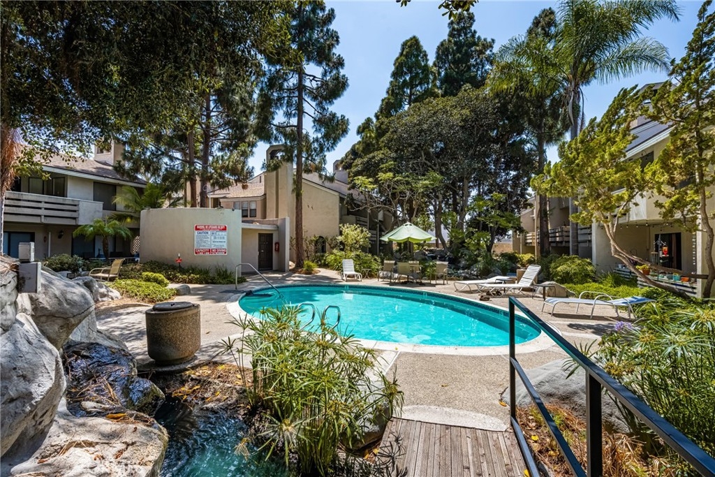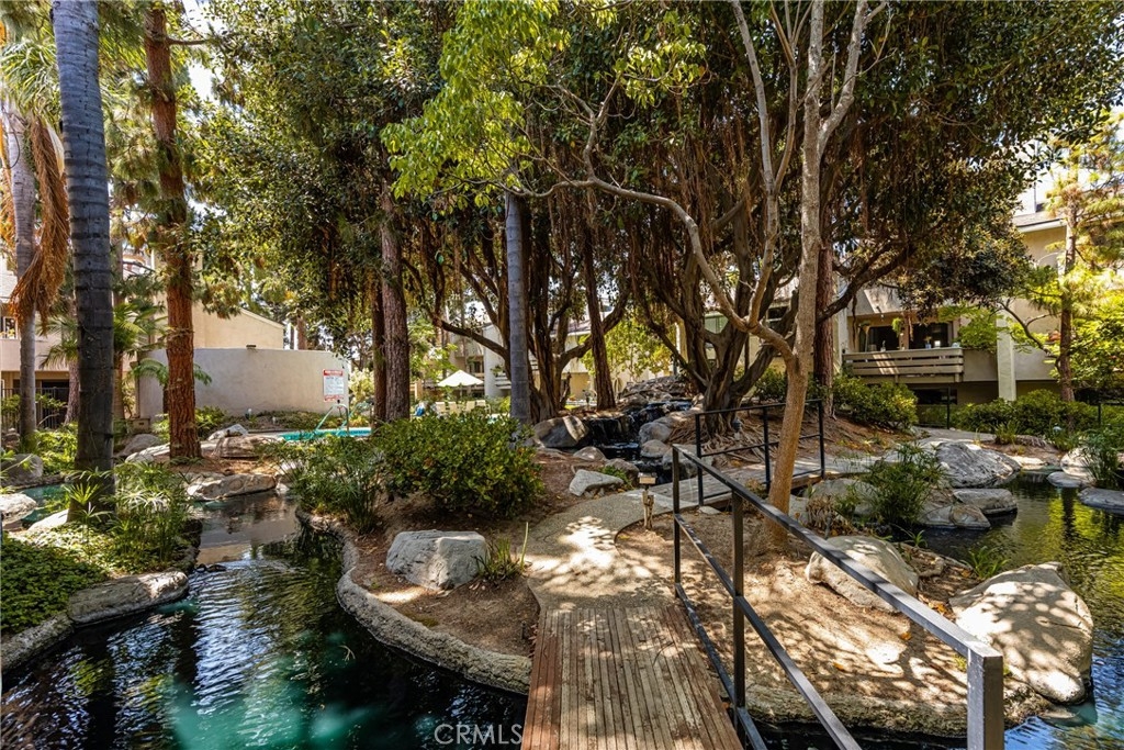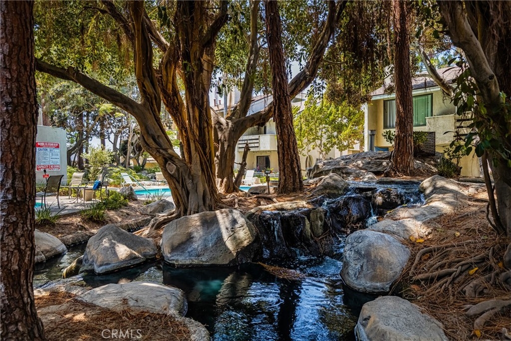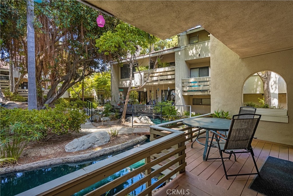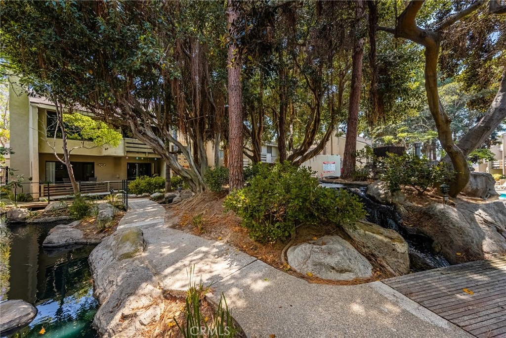 400 Brighton Springs | Streamside End-Unit with Private Deck & Vaulted Ceilings Welcome to 400 Brighton Springs — a beautifully located first-floor end-unit in one of the most peaceful and private spots in the community. Surrounded by lush landscaping, flowing streams, and tranquil ponds, this home offers resort-style living just minutes from everything. Enjoy your morning coffee or evening unwind on the large private deck, perfectly positioned over the community streams with peaceful views of ducks on the pond, mature trees, and the nearby pool and spa. Inside, the home features vaulted ceilings, a cozy fireplace in the living room, two spacious bedrooms, and inside laundry for added convenience. The primary suite includes a walk-in closet, while the open-concept living area is filled with natural light and designed for comfort. Tucked into a beautifully maintained community, this home is walking distance to local shops, restaurants, and offers quick access to major freeways for an easy commute. Whether you're looking for serenity, central convenience, or a turnkey place to call home — 400 Brighton Springs delivers it all.