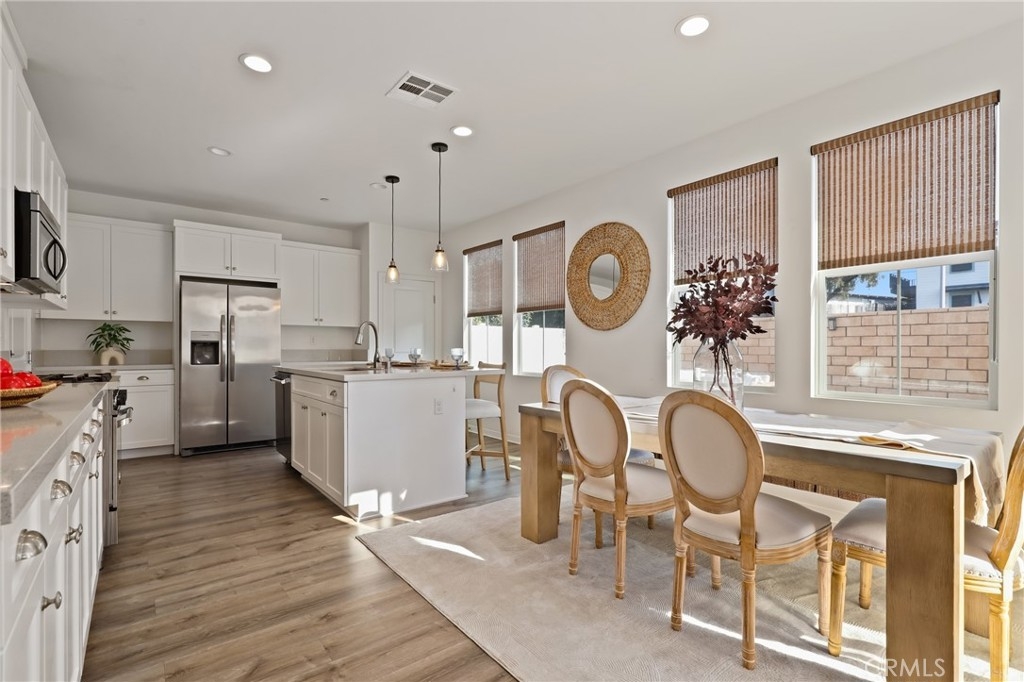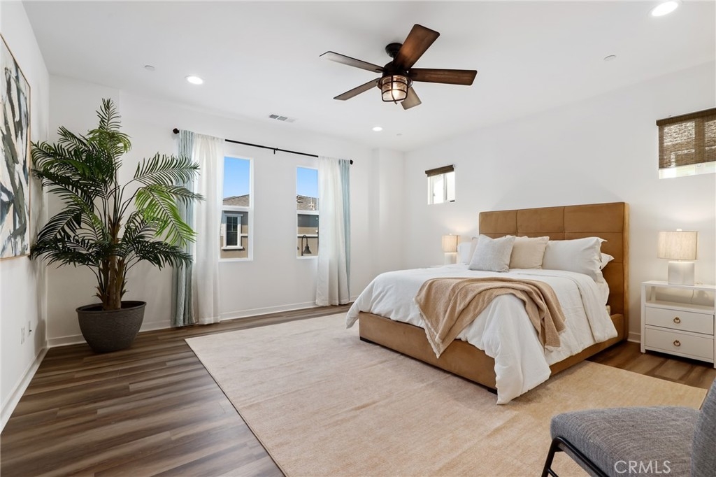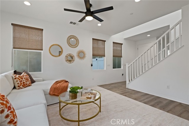 Modern Coastal Living in Aura with 4 Bedrooms, A Loft, and Minutes from the Beach. Tucked into one of the most private and desirable locations within Aura—a contemporary enclave of newer detached homes in Costa Mesa—this 4 bedroom, 3 bathroom residence built in 2017 offers 2,225 square feet of modern design, comfort, and convenience. Just minutes from the beach, Segerstrom Center for the Arts, and South Coast Plaza, it provides the ultimate Southern California lifestyle. The open-concept first floor features soaring ceilings, abundant natural light, and a seamless flow between the living, dining, and kitchen areas. The gourmet kitchen is the heart of the home, showcasing quartz countertops, soft-close shaker cabinetry, a deep farmhouse sink, a large center island with pendant lighting, and premium Bertazzoni Italian appliances. A main-floor bedroom and full bath offer flexibility for guests or a home office. Upstairs, the spacious primary suite includes dual walk-in closets and a spa-inspired bath with dual vanities, a frameless walk-in shower with multiple showerheads and bench, and a private water closet. Two additional bedrooms, a versatile loft, and a full bath provide comfort and functionality, while the upstairs laundry room with utility sink and built-in cabinetry adds convenience. Wide-plank waterproof laminate flooring, LED recessed lighting, designer fixtures, central A/C, and dual-pane windows enhance the home’s modern appeal. The private backyard features pavers, block walls, and vinyl fencing, creating a low-maintenance space perfect for entertaining. A two-car garage with full driveway parking, along with access to the community park with playground and BBQ area, round out the property. With a home warranty through 2029 and a location that blends coastal living with easy access to freeways, shopping, and entertainment, this Aura home truly checks every box.