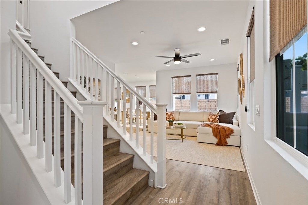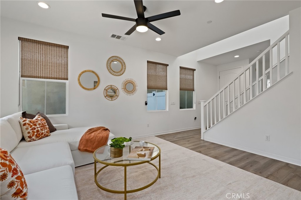 Modern Coastal Living in Aura with 4 Bedrooms, A Loft, and Minutes from the Beach. Tucked into one of the most private and desirable locations within Aura—a contemporary enclave of newer detached homes in Costa Mesa—this 4 bedroom, 3 bathroom residence built in 2017 offers 2,225 square feet of modern design, comfort, and convenience. Just minutes from the beach, Segerstrom Center for the Arts, and South Coast Plaza, it provides the ultimate Southern California lifestyle. The open-concept first floor features soaring ceilings, abundant natural light, and a seamless flow between the living, dining, and kitchen areas. The gourmet kitchen is the heart of the home, showcasing quartz countertops, soft-close shaker cabinetry, a deep farmhouse sink, a large center island with pendant lighting, and premium Bertazzoni Italian appliances. A main-floor bedroom and full bath offer flexibility for guests or a home office. Upstairs, the spacious primary suite includes dual walk-in closets and a spa-inspired bath with dual vanities, a frameless walk-in shower with multiple showerheads and bench, and a private water closet. Two additional bedrooms, a versatile loft, and a full bath provide comfort and functionality, while the upstairs laundry room with utility sink and built-in cabinetry adds convenience. Wide-plank waterproof laminate flooring, LED recessed lighting, designer fixtures, central A/C, and dual-pane windows enhance the home’s modern appeal. The private backyard features pavers, block walls, and vinyl fencing, creating a low-maintenance space perfect for entertaining. A two-car garage with full driveway parking, along with access to the community park with playground and BBQ area, round out the property. With a home warranty through 2029 and a location that blends coastal living with easy access to freeways, shopping, and entertainment, this Aura home truly checks every box.