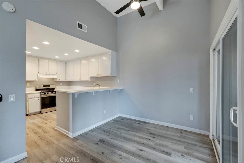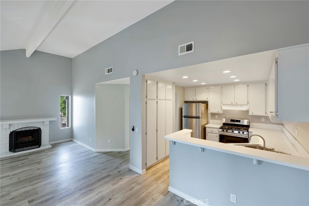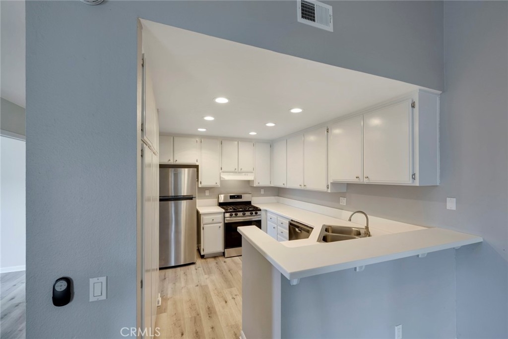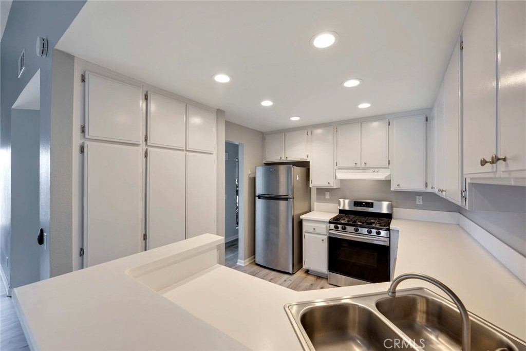 This is a great opportunity to own your own home in Orange County & be at the beach w/in minutes. Large 1233 sqft, END UNIT home w/high ceilings & plenty of natural light enhances your feel of open space. 3rd bedroom just needs a closet was previously used as an office. Enjoy the easy to maintain hard surface floors & brand new carpet in 2 bedrooms. Indoor laundry includes side by side washer & dryer. Good sized open kitchen provides lots of storage space & includes all stainless steel appliances including refrigerator/freezer. Your private patio overlooks the peaceful meandering river rock stream, waterfall & manicured landscaping with sounds that are sure to ease your mind. Hard to find 2 car attached garage makes this the perfect place to call home. This condo complex is conveniently located off Victoria & the 55 frwy close to shopping, dining & the beach. The opportunities this home offers are endless.