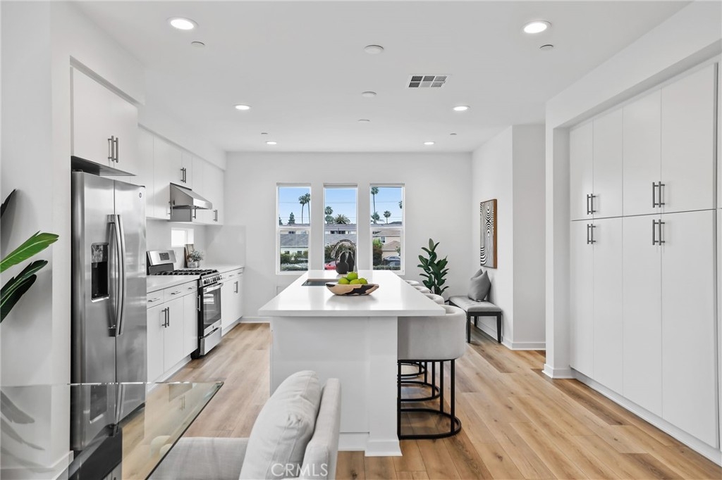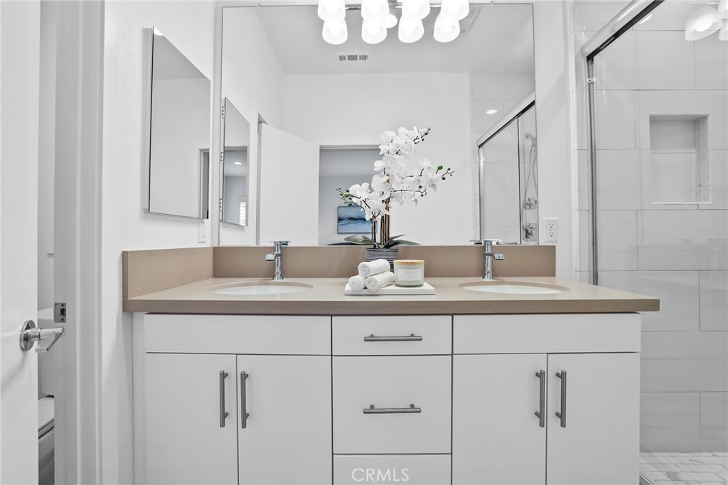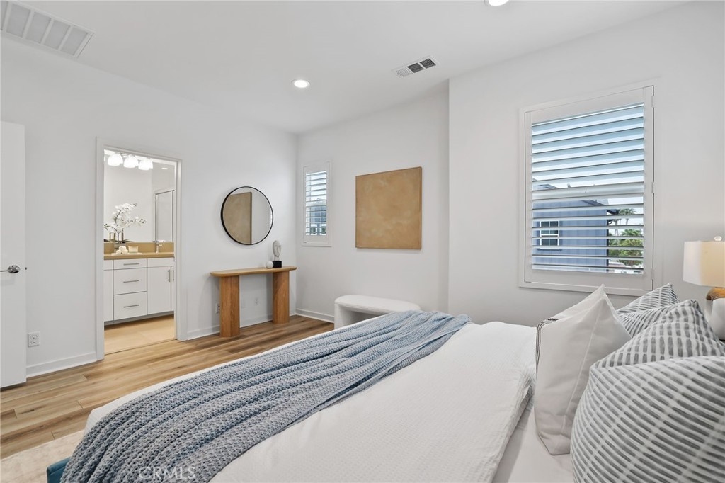 Welcome to Twenty8 Walk, a gated community of detached single-family homes in the heart of Costa Mesa. This residence, located in the community’s most desirable spot with a highly sought-after floor plan, offers a modern lifestyle and exceptional comfort. The main level features a spacious bedroom with private backyard patio access, a full bathroom, and an attached two-car garage with epoxy flooring. The second level boasts a bright, open-concept layout with a stunning kitchen, large island, stainless steel appliances, an enclosed balcony, a powder room, and shutters throughout. The top floor includes two bedrooms connected by a Jack-and-Jill bathroom, plus a primary suite with dual vanity, walk-in shower, and walk-in closet. Ideally situated near top schools, dining, shopping, golf courses, and the beaches of Newport Beach and Costa Mesa, this home also features owned solar panels and a tankless water heater.