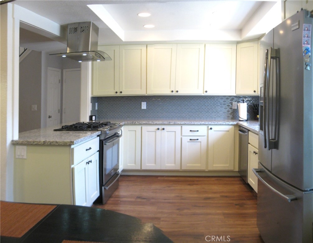 Perfect for your fussiest buyers! Gorgeous town home with 2 master suites upstairs and a guest bath downstairs. Beautifully upgraded throughout!! Open floor plan perfect for entertaining! AMAZING Kitchen has granite counters, new sinks, new cabinets, new appliances including the stainless steel refrigerator, recessed lighting... perfect for the chef in the family! Scraped and textured ceilings throughou, new vinyl windows and skylight. Stunning new wood-like flooring, tile and new carpet. Private tropical patio and yard with faux grass and privacy fence just perfect for outdoor dining and parties! You'll love the living area with a cozy fireplace and plenty of room for your oversize sectional sofas and chairs! Full size gas laundry hookups in the garage and the washer and dryer are included! TWO car garage is attached and has convenient direct access to the home. Close to beaches, shopping and fine dining! Impressive in every way!!! This is a MUST SEE!